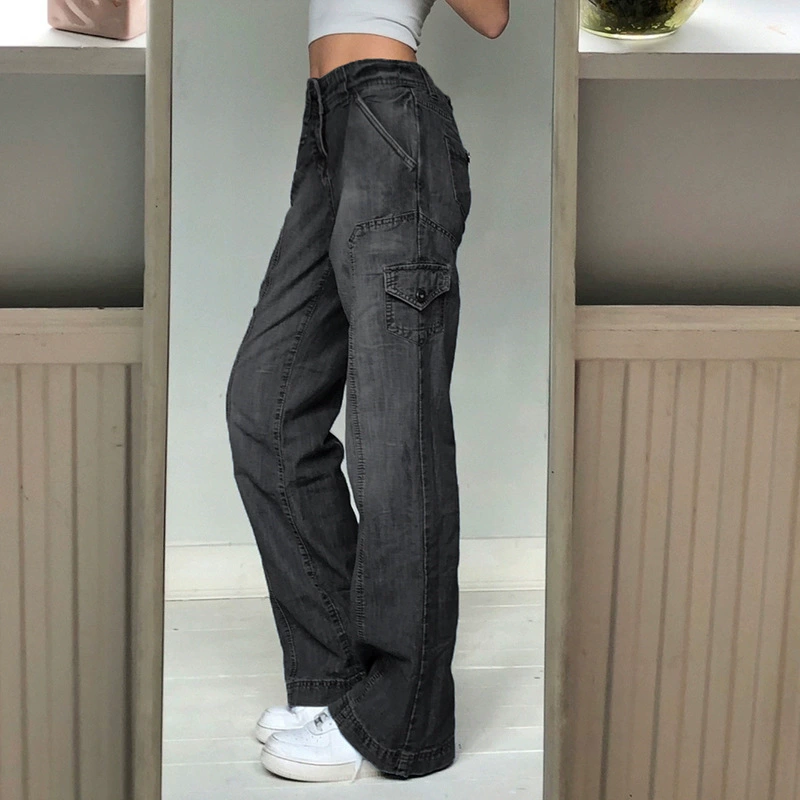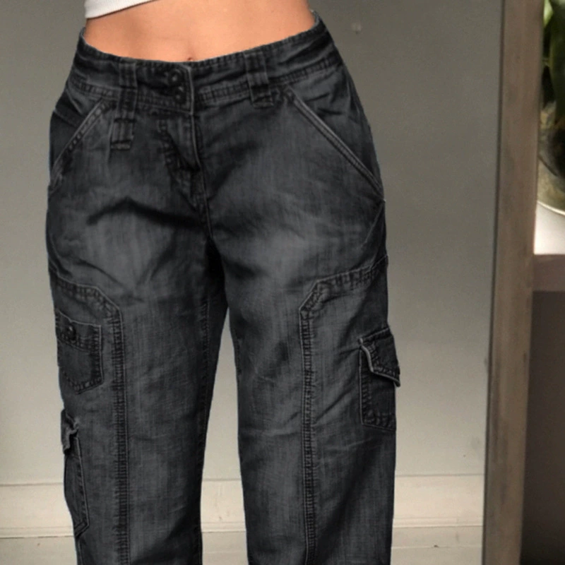 Женские джинсы в готическом стиле, с заниженной талией и карманами