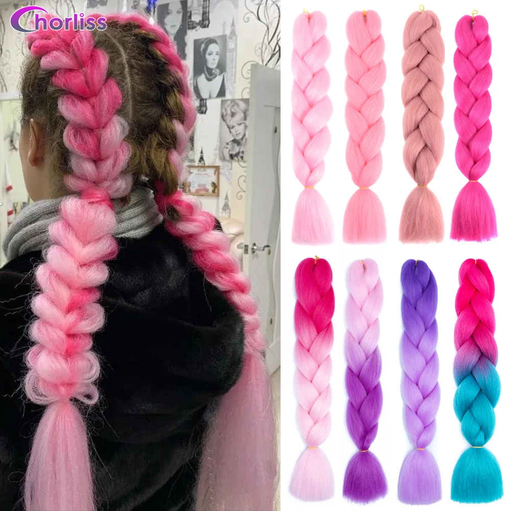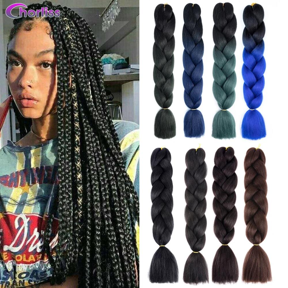 Омбре Джамбо коробка косички волос Синтетические косички для плетения волос 24 дюйма выражение волос удлинители предварительно растянутые для женщин