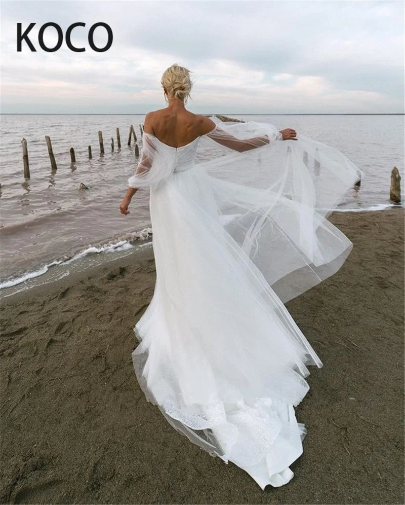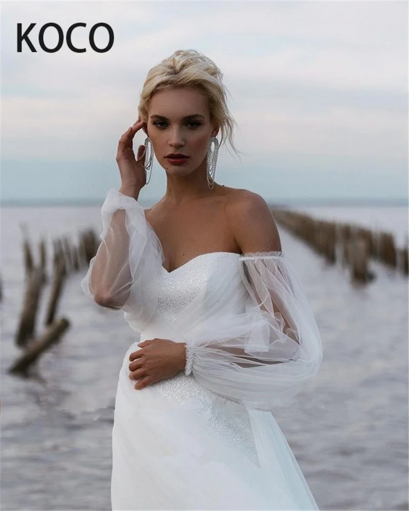 Женское свадебное платье на молнии MACDUGAL, белое фатиновое пляжное платье с пышными рукавами, 2021