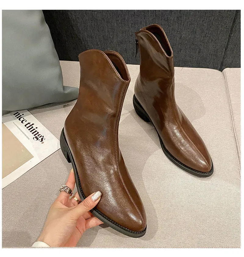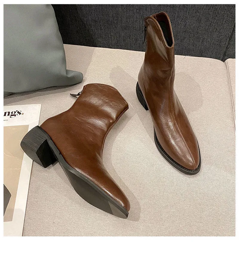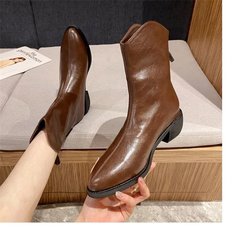 Повседневные ковбойские ботинки в стиле ретро, казаки, женская обувь, массивные Дизайнерские ботильоны на платформе с острым носком, в готическом стиле, коричневые, осень 2021