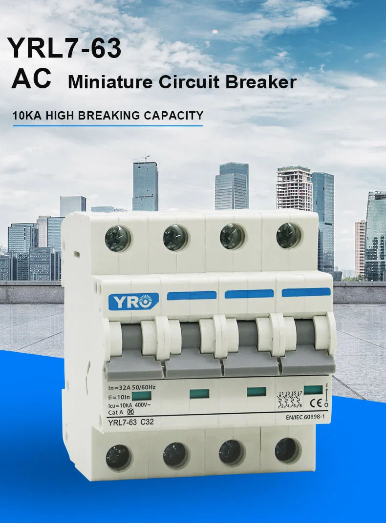 Мини-автоматический выключатель, 4P, 400 В переменного тока, MCB 6A 10A 16A 20A 25A 32A 40A 50A 63A