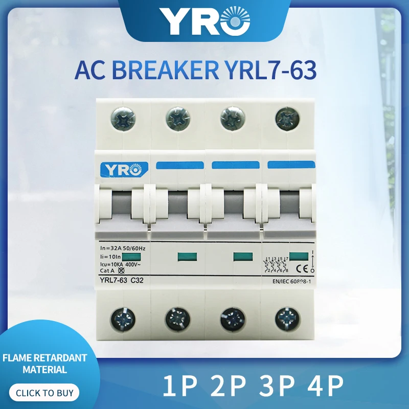 Мини-автоматический выключатель, 4P, 400 В переменного тока, MCB 6A...