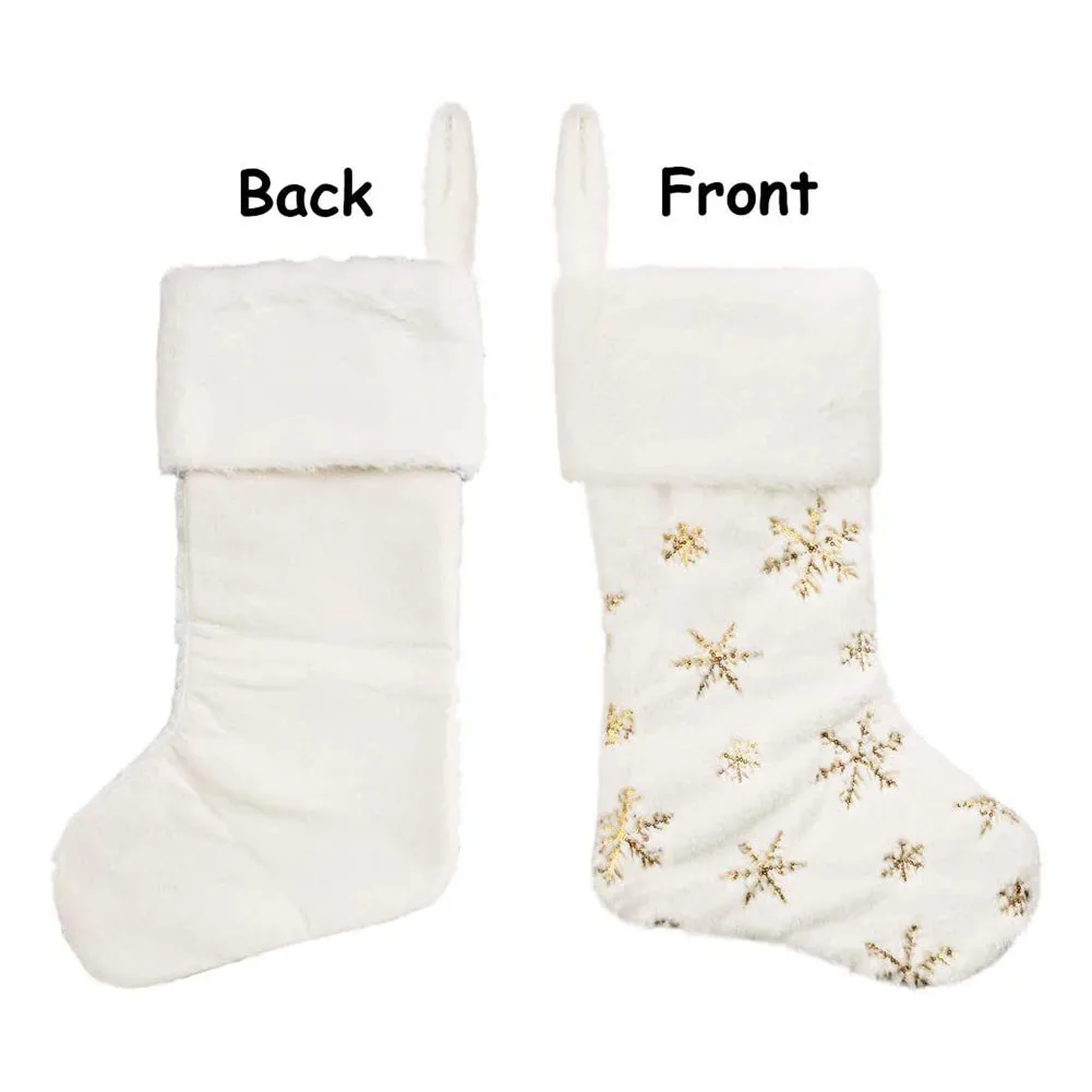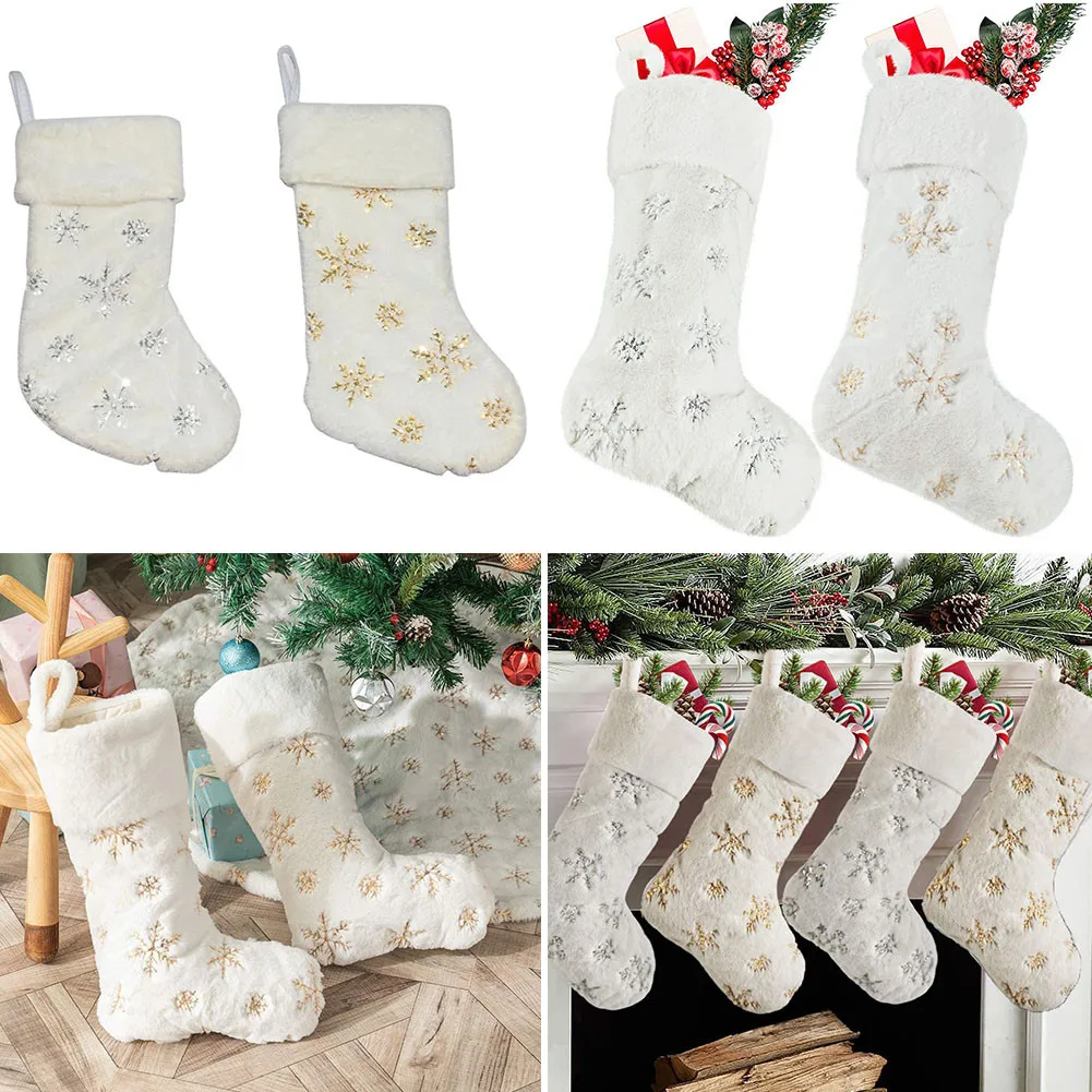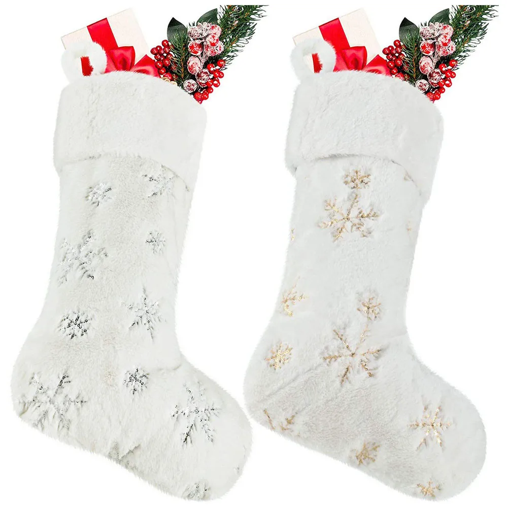 Особенности:* 100% новый и высокое качество* Роскошные рождественские носки, изготовленные из белого пушистого искусственного меха. Используйте их для украшения камина.* Большие высококачественные плюшевые рождественские носки, мягкие и удобные, подходят для конфет и детских подарков.* Персонализированные рождественские носки-тщательно сшитые золотые блестки, Сверкающие Снежинки и сочетающиеся с белой искусственной меховой тканью, очень подходят для зимних рождественских украшений снежной мечты.* Легко повесить-есть маленькое кольцо на верхней части каждого чулок, чтобы повесить, вы можете легко повесить его на дерево, камин, стену, чтобы создать захватывающее рождественское утро.* Когда светильник с рождественской елкой горит, мягкие и плотные белые чулки будут отражать светильник, создавая прекрасный эффект снежной сцены.Характеристики:* Материал: искусственный мех* Размер: 45x18 см/18x7 дюймов (около)* Цвет: как показаноПосылка:Рождественский чулок-1 шт.Примечание:1. Реальный цвет товара может быть s светильник ly отличаться от изображений, размещенных на веб-сайте, по причине многих факторов, таких как яркость вашего монитора и светильник яркость.2. Возможны незначительные отклонения в измерениях вручную.