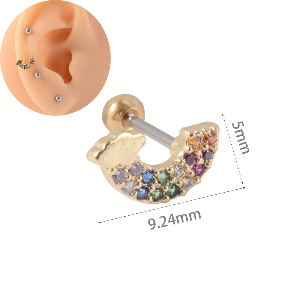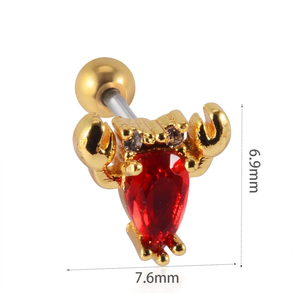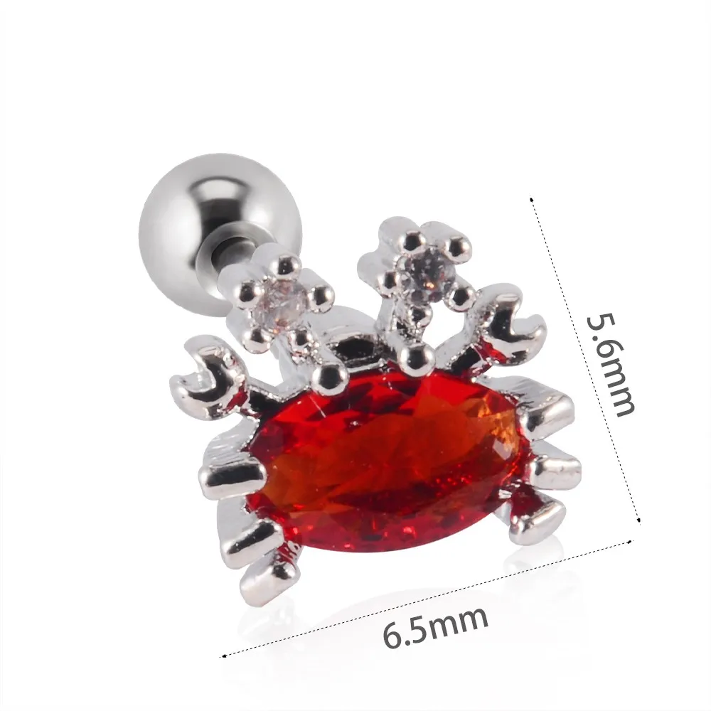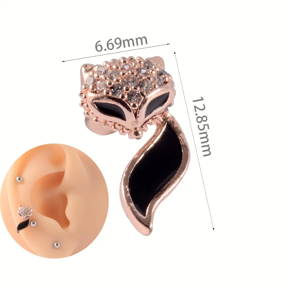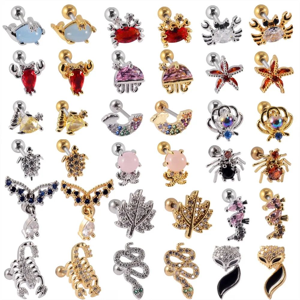 1 шт. из нержавеющей стали, милые животные, лиса, змея, ракушки, бриллианты, спираль, безопасные серьги, циркониевые модные ювелирные изделия для тела 20 г