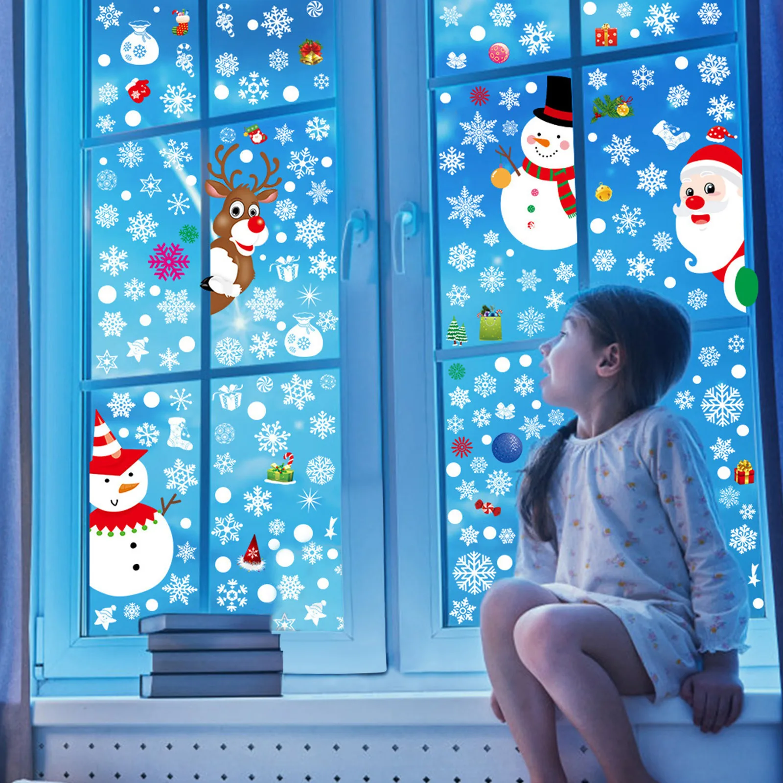 Рождественские наклейки на окна, снежинки, новогодние украшения 202...
