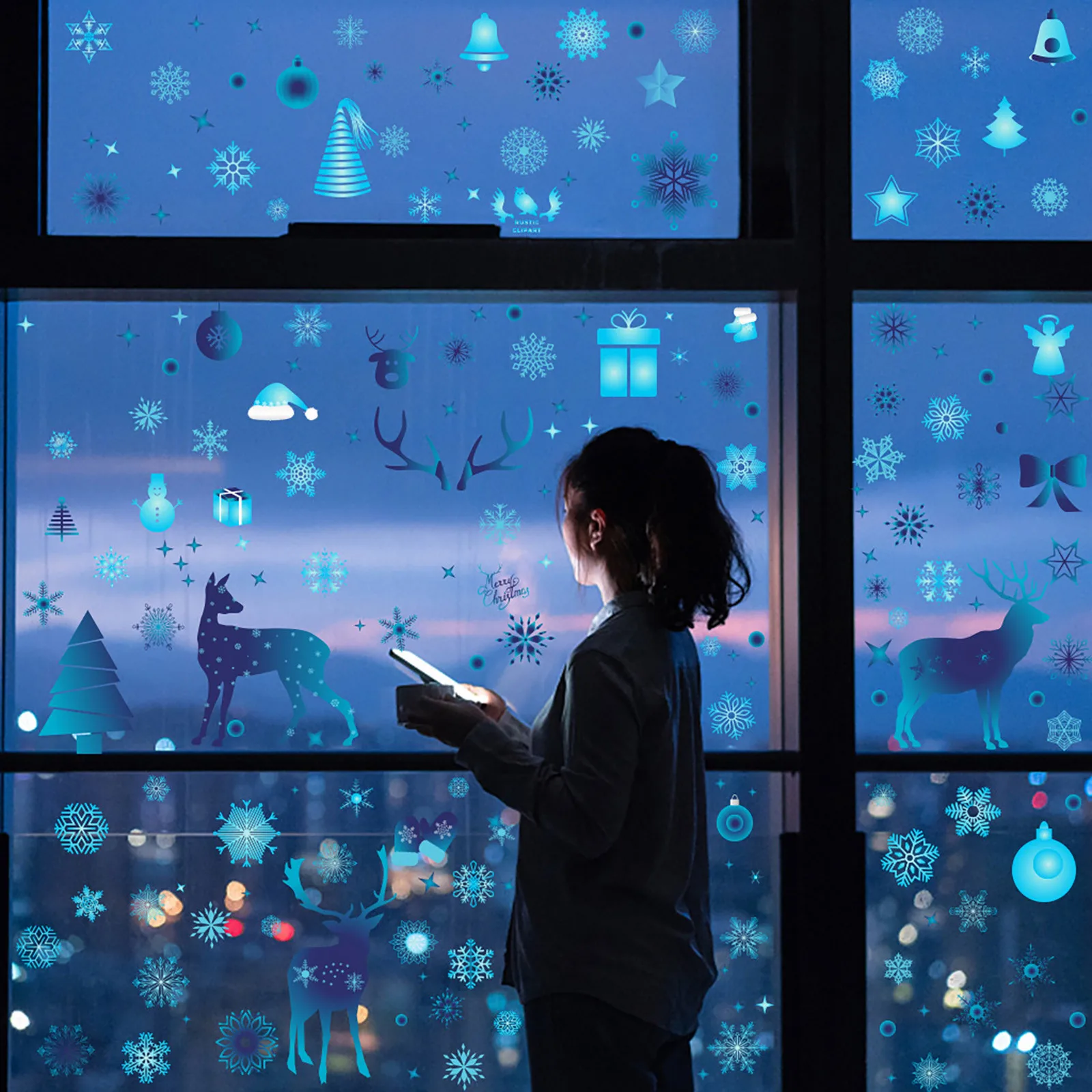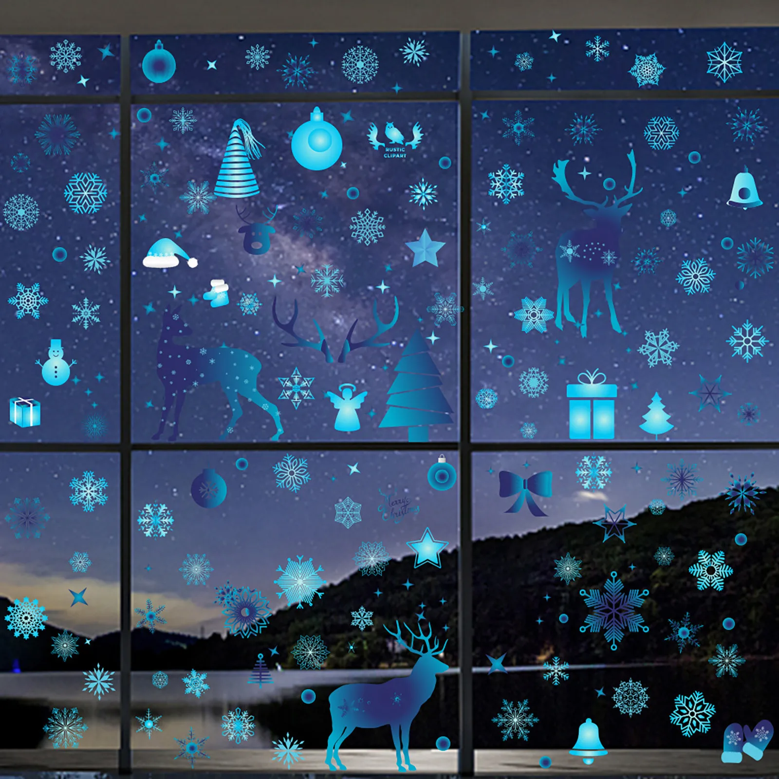 2022 новые рождественские синие снежинки Лось Электростатическая На...