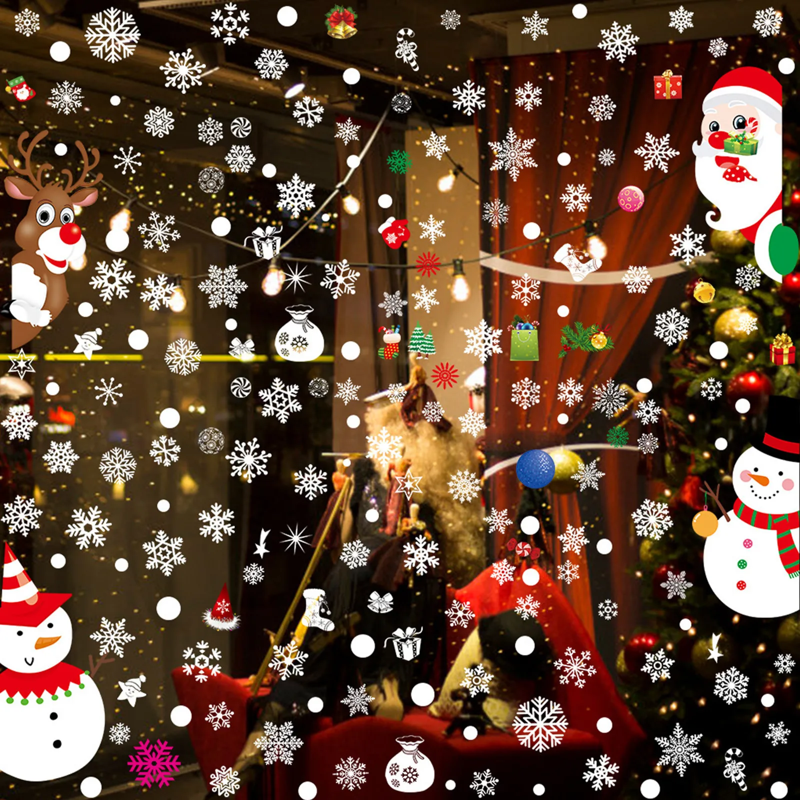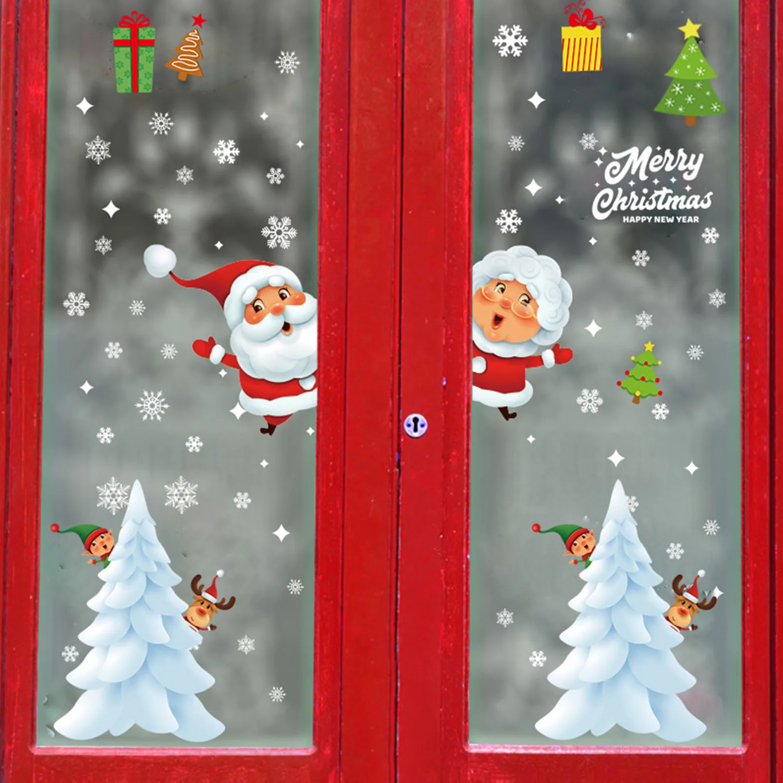 Рождественская Наклейка на окно Санта-Клаус Снежинка наклейки зимни...