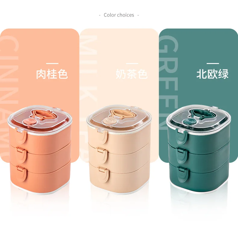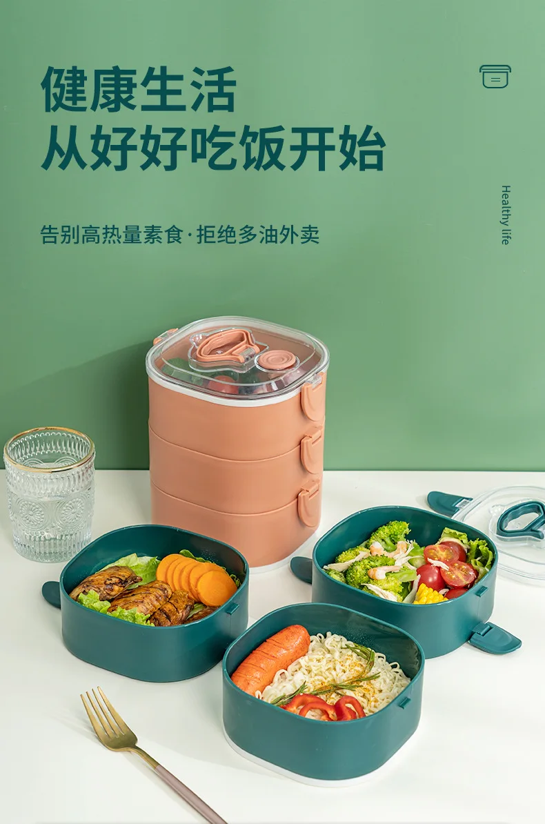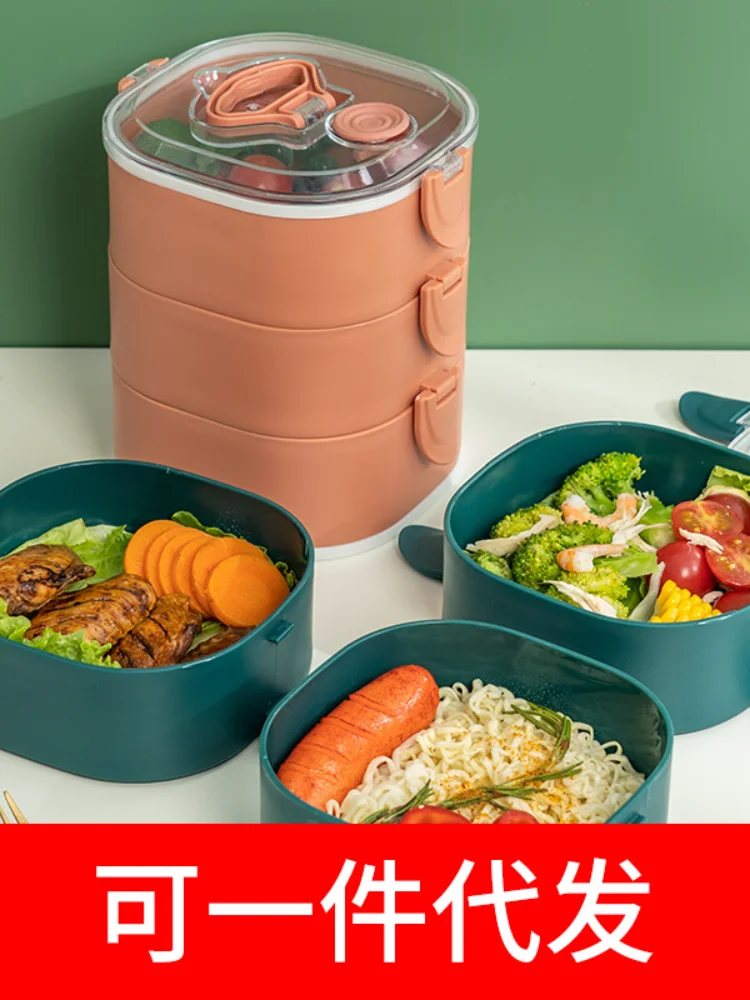 Ланч-бокс для микроволновой печи, портативный трехслойный пищевой к...