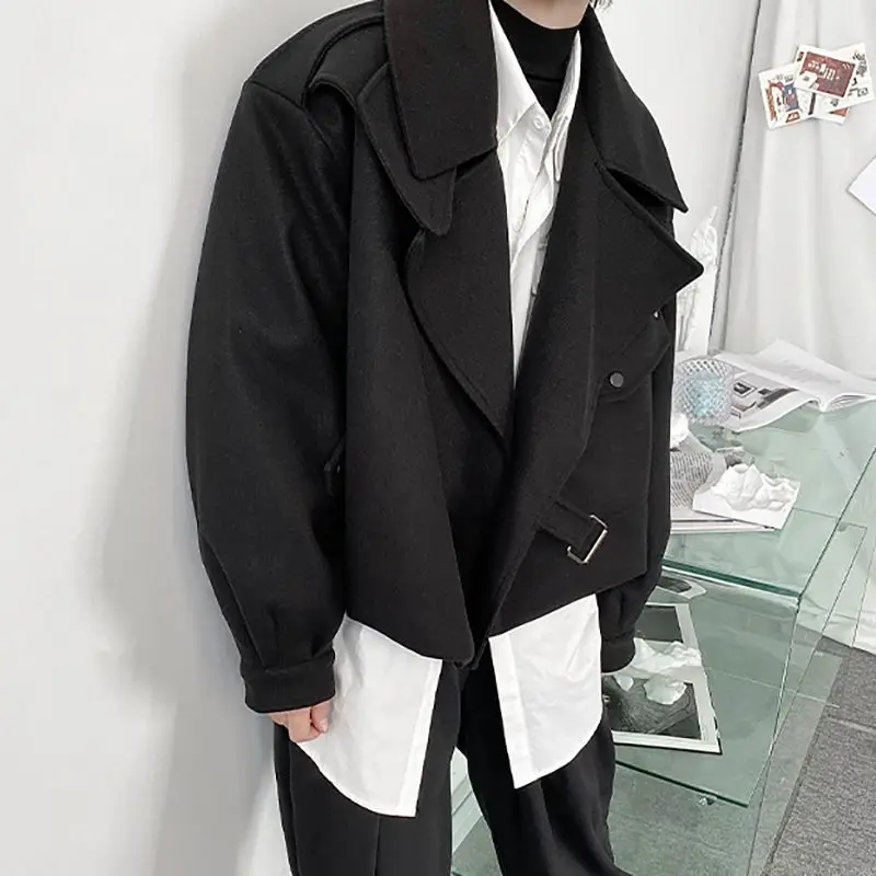 Куртка мужская шерстяная, с отворотом и длинным рукавом, с карманами, повседневная, уличная, 2021