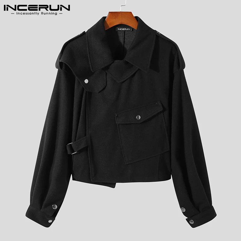 Куртка INCERUN Мужская однотонная с отложным воротником, модная ули...
