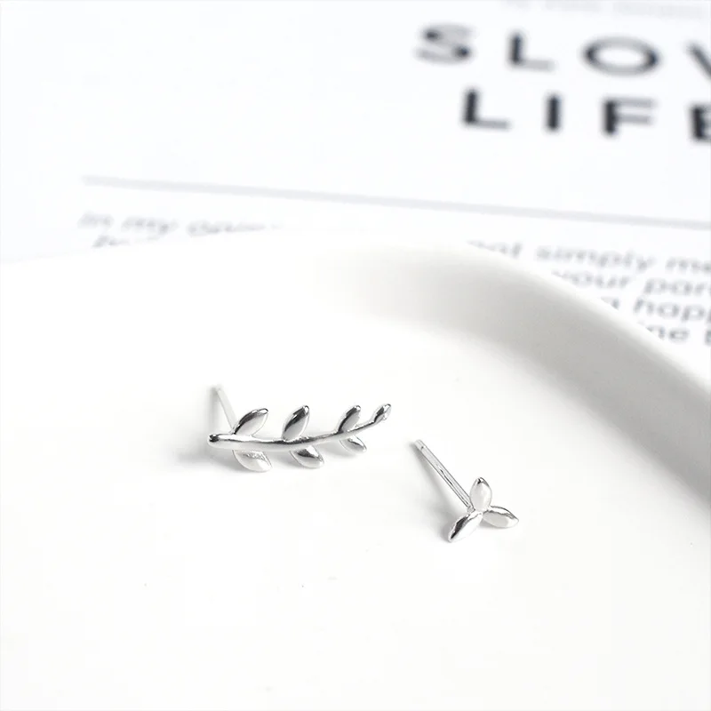 LKO Настоящее серебро 925 пробы, креативные серьги с оливковыми ветвями и листьями для женщин, шпильки для ушей, новые асимметричные украшения, аксессуары