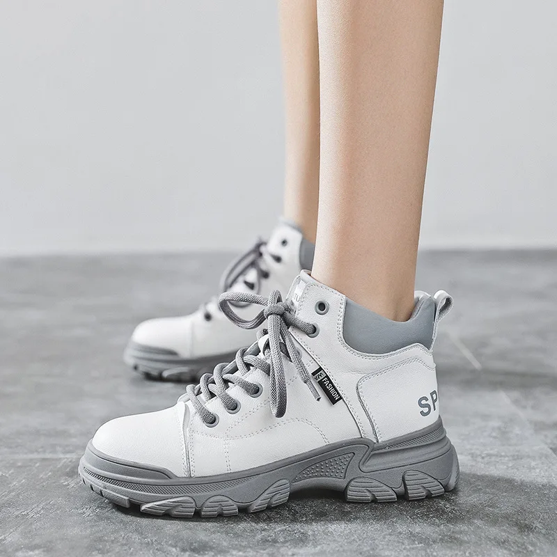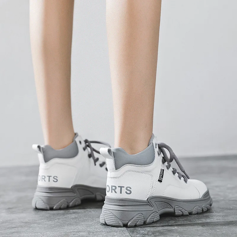 Кроссовки женские из свиной кожи, Повседневные высокие, с круглым носком, на шнуровке, модная обувь на плоской подошве в стиле ретро