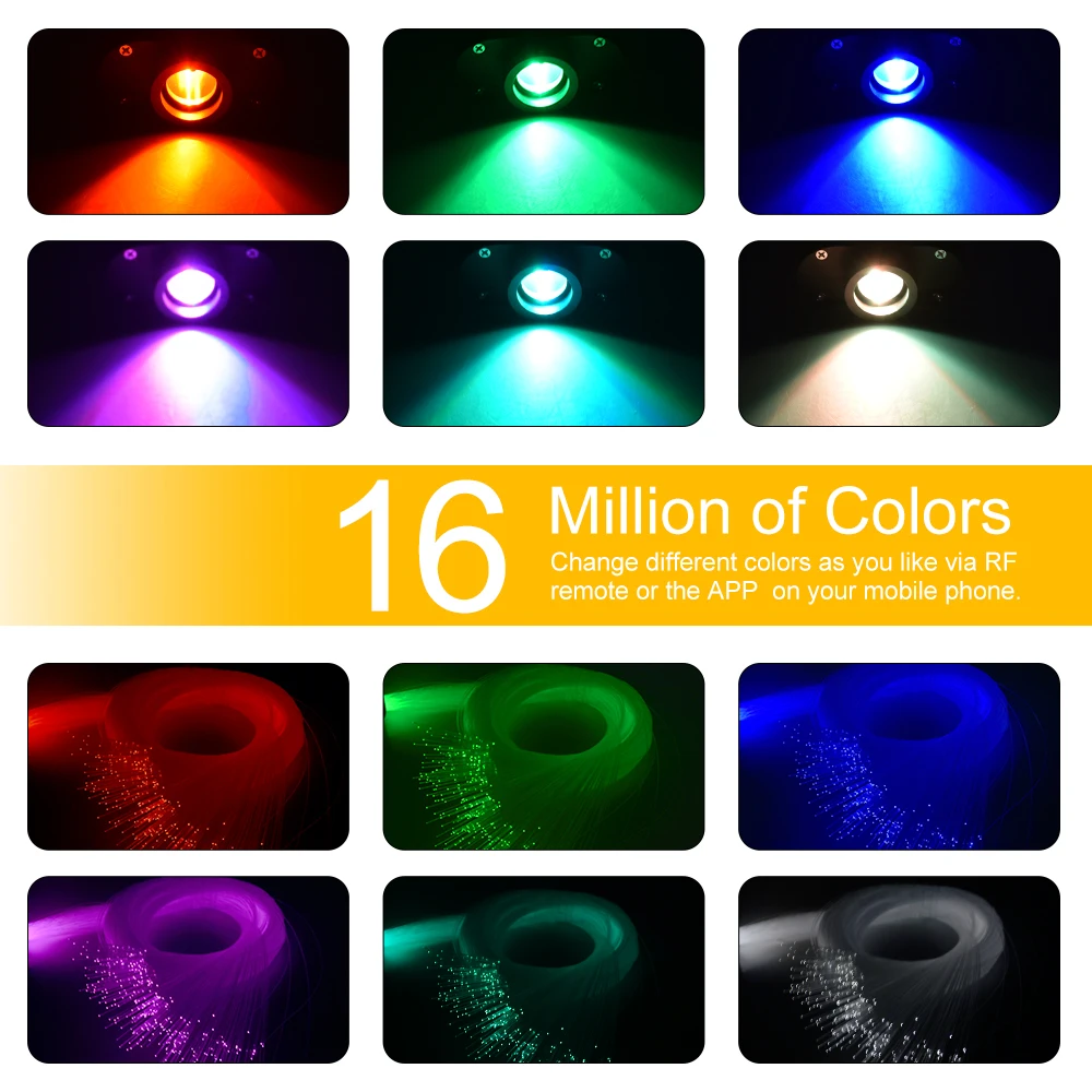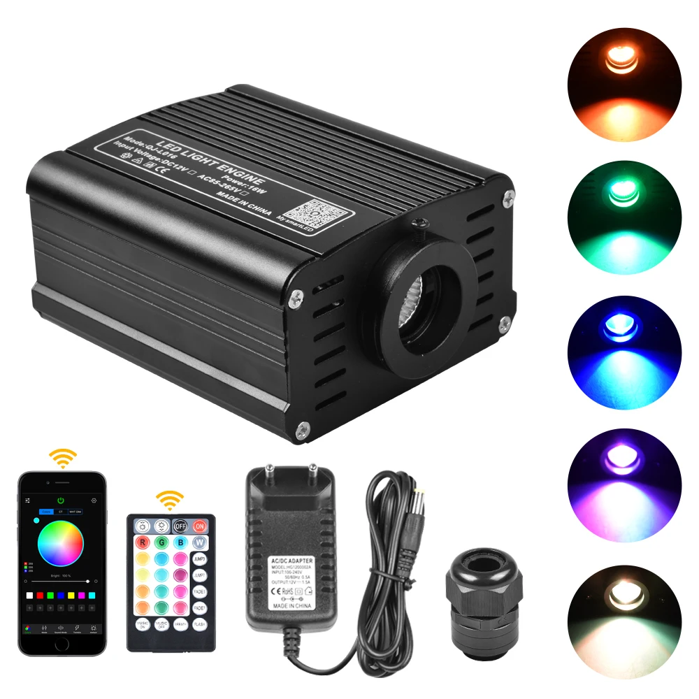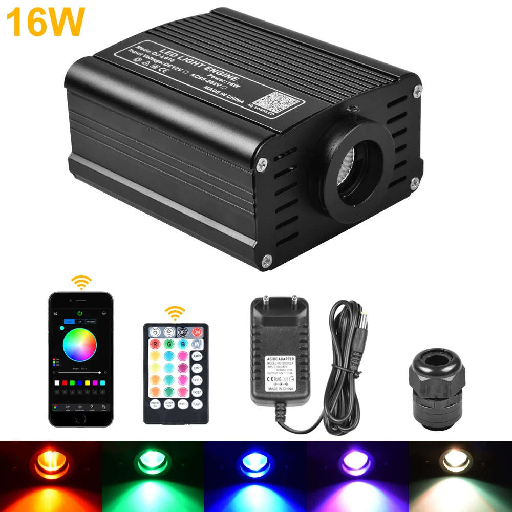 Светодиодный волоконно-оптический аппарат, 16 Вт, 12 В, источник света звездного неба для автомобиля, RGBW, Bluetooth, управление через приложение для автомобисветильник щения