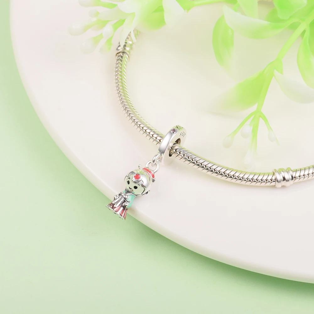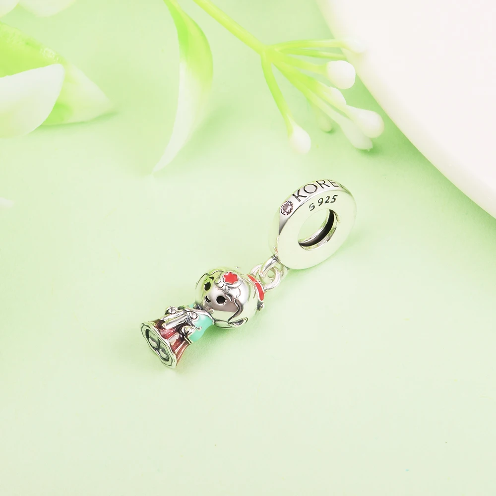Подходит для браслета Pandora, искусственная Серебряная кукла в Корейском стиле, подвески Hanbok, бусины-Подвески для изготовления ювелирных изделий