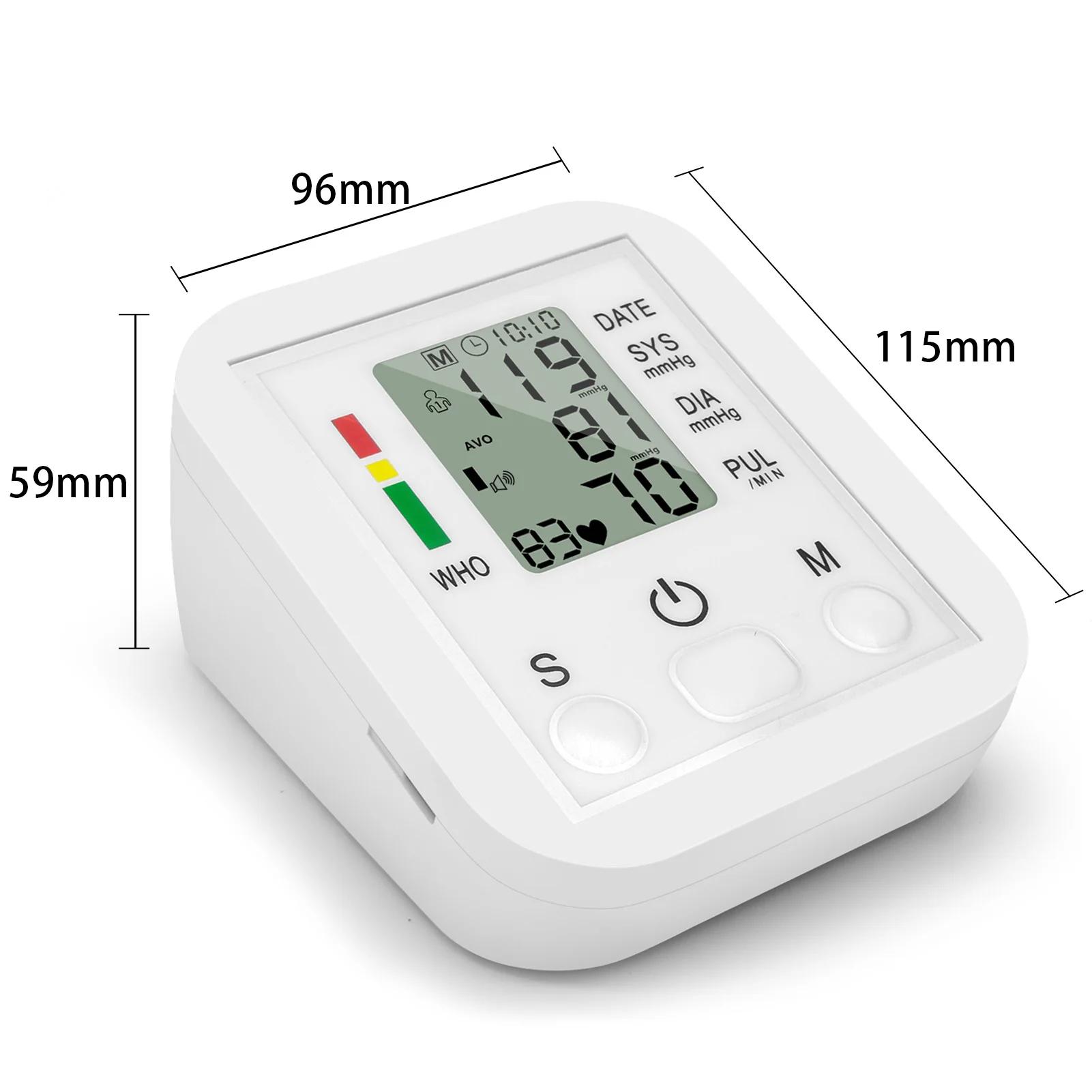 Особенности:Домашний Электронный Сфигмоманометр компактен и портативен и может измерять давление крови в любое время и в любом месте.Он поддерживает хранение данных измерений двойного человека, и каждый человек может записывать 99 групп данных, что удобно для сравнения и наблюдения за историческими данными.ЖК-дисплей и английское голосовое вещание обеспечивают удобство использования пожилыми людьми. Вы можете чтать и легко слышать Систолическое давление, диастолическое давление и данные пульса.Функция часов: вы можете легко установить год, месяц, день, час, минуту самостоятельно.Тип конструкции руки, вам нужно снять пальто или свитер для точного измерения.Сфигмоманометры ВОЗ указывают на состояние давления крови, что удобно для пользователей точно определить, является ли давление крови нормальным.Систолическое и диастолическое давление отдельно показывают, что люди могут судить о том, находятся ли они в нормальном диапазоне с первого взгляда.Больше памяти и нерегулярное Обнаружение сердцебиения, напоминают нерегулярное сердцебиение и показывают среднее Измерение за последние три раза.Функция обнаружения низкой мощности, обнаружение низкой мощности в рабочем состоянии, ЖК-дисплей показывает низкую мощность.Двойной источник питания, питание от аккумулятора или разъем USB.Характеристики:Название: верхний монитор артериального давления на рукуЦвет: белыйМатериал: АБС + ПКГолосовая функция: голос на английском языкеИзмеряемая окружность дужки: 220-320 мм/8,7-дюймаДиапазон измерения: давление крови: 0 ~ 280 мм рт. Ст. (0 ~ 195 кПа), Частота пульса: 40 ~ раз/минТочность измерения: значение давления крови ± 5% кПа (± 3 мм рт. Ст.), значение считывания количества импульсов ±Давление: автоматический режим давленияРабочая температура: 10 ℃ ~ 40 ℃Рабочая влажность: 40% ~ 85%Температура хранения: - 20 ℃ ~ 50 ℃Влажность при хранении: 15% ~ 90%Размер экрана дисплея: 41*61 мм/1,6 * 2.4inМодель аккумулятора: 4*1,5 В (4 щелочных ААА, доставка без батареи)Разъем: USBВес посылка: 313 г/11 унцийРазмер упаковки: 13,7*10*8,6 см/5,4*3,9 * дюймаУпаковочный лист:1 * сфигмоманометр1 * USB кабель1 повязка на руку1 * Руководство пользователя на английском языке1 * сумка для хранения