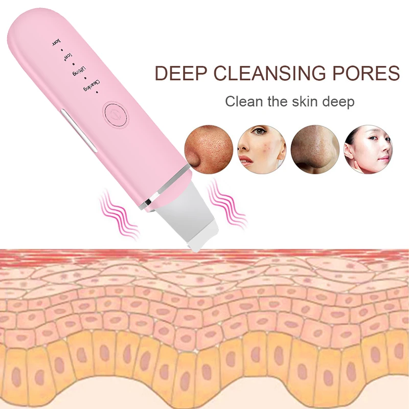Ультразвуковой скребок для кожи, вибрирующий шпатель для лица, скребок для удаления черных точек, скребок для лица, лопатка для очистки, кавитации, пилинга, лифтинга лица