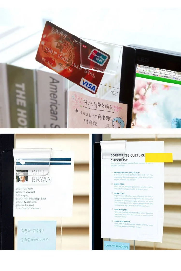 3 @ # креативный акриловый держатель для монитора, доски для записей для клейкой ленты, прозрачный держатель для карт с именем и телефона, настольный пластиковый держатель