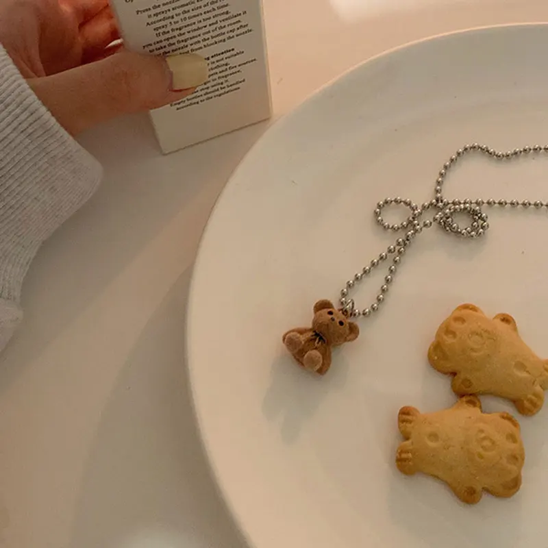 Милое ожерелье для женщин, Маленькая подвеска в виде медведя, Шейная цепочка, ювелирное изделие для шеи, регулируемая длина, подарок для девушек LL @ 17