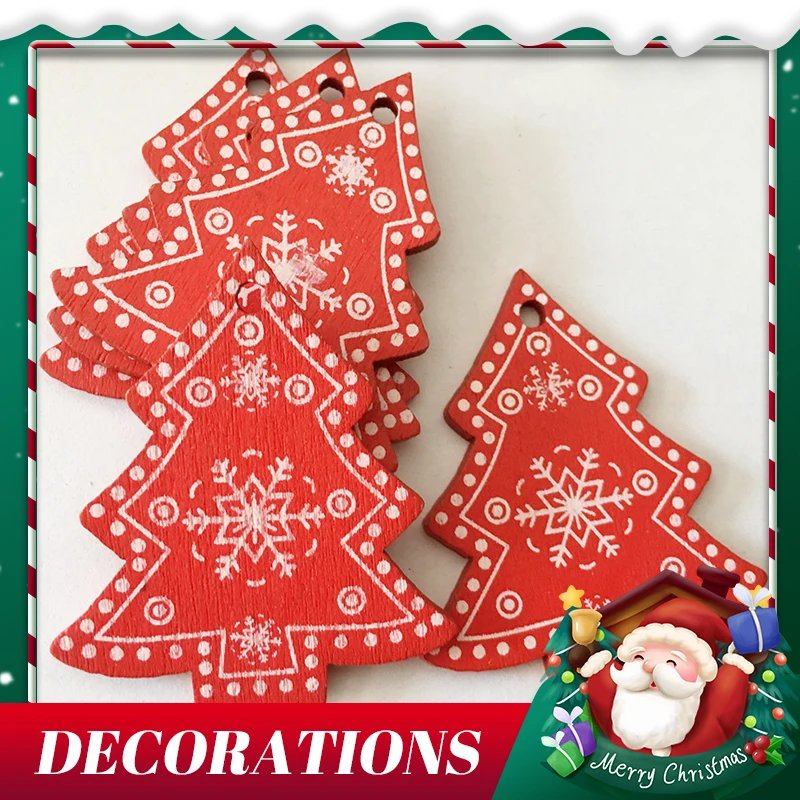 12 шт.лот деревянное Рождественское украшение, красно-белое украшен...