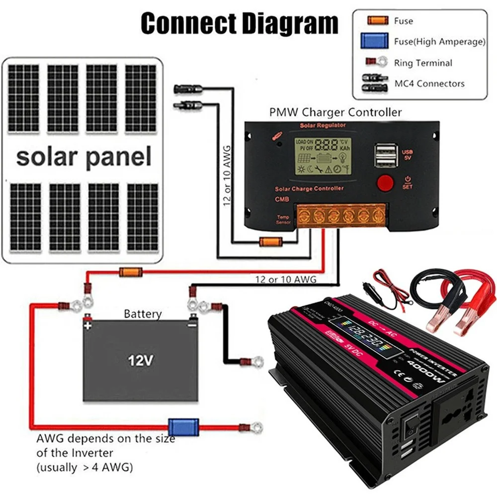 Автомобильный инвертор напряжения Peak 4000 Вт 12 В до 110 В 220 В светодиодный ным дисплеем двойной USB адаптер трансформатор напряжения модифицированный синусоидальный сигнал