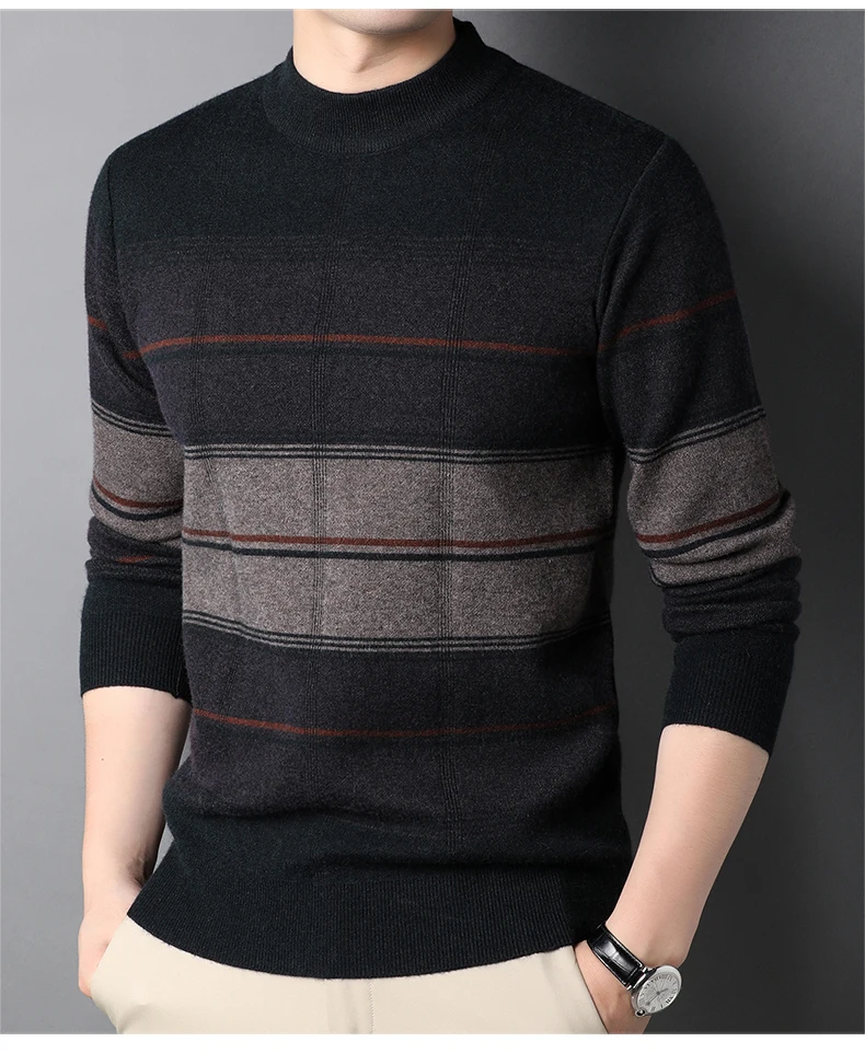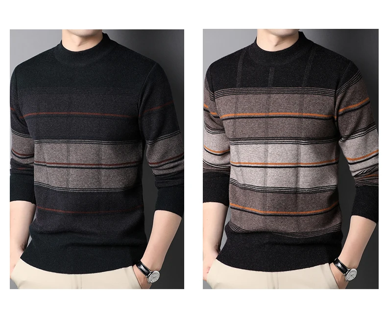 Мужской вязаный свитер MIACAWOR, теплый облегающий шерстяной пулове...