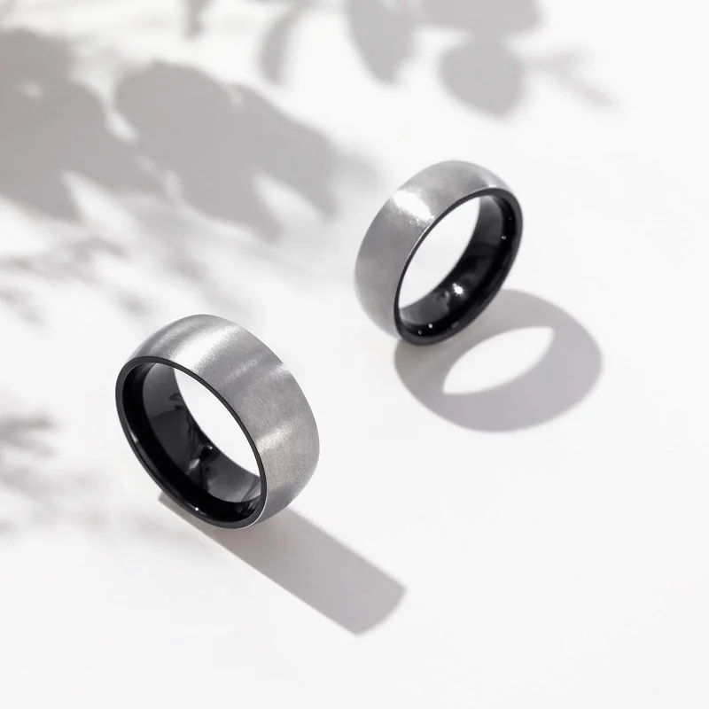 Точно так же, как показано на картинке. Кольцо изготовлено из титана и невероятно легкое. Размер соответствует заказанному и точно соответствует размеру. Кольцо закруглено внутри для более удобной посадки. Кольцо легко царапается! У меня было только 2 дня, и он уже полон царапин.