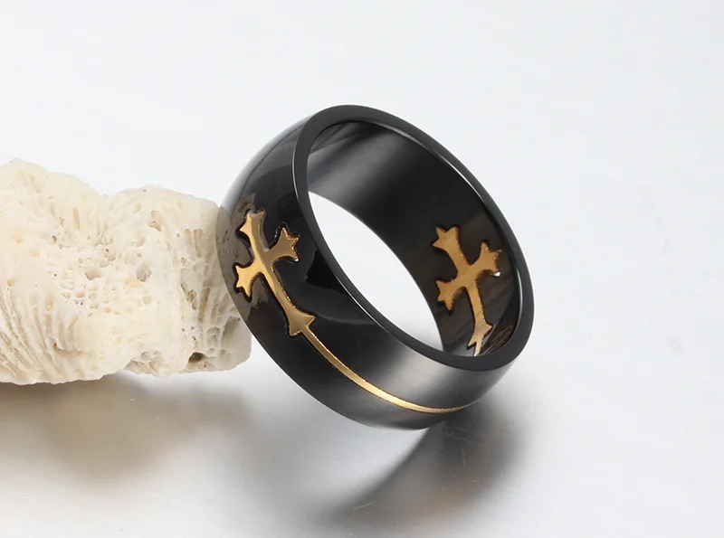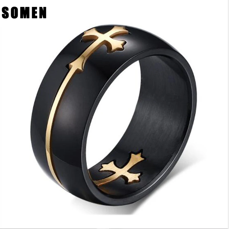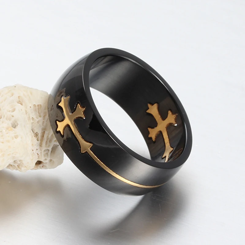 Кольцо из нержавеющей стали для мужчин и женщин, отделяемое повседневное Ювелирное Украшение с крестом, черного цвета, обручальное