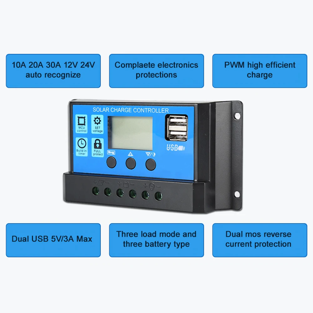 PWM-30A, максимальная мощность: 24 В (12 В), 48 В (24 В); Максимальная мощность: 360 Вт (12 В), 720 Вт (24 В)