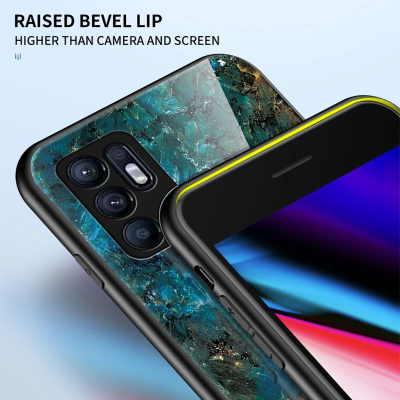 Роскошный Мраморный мягкий бампер из закаленного стекла жесткий чехол для OPPO Reno 64g 6z 6 Pro A16 Find X3 neo X3 Lite Realme 8 7 GT A53 чехол