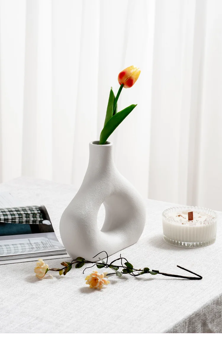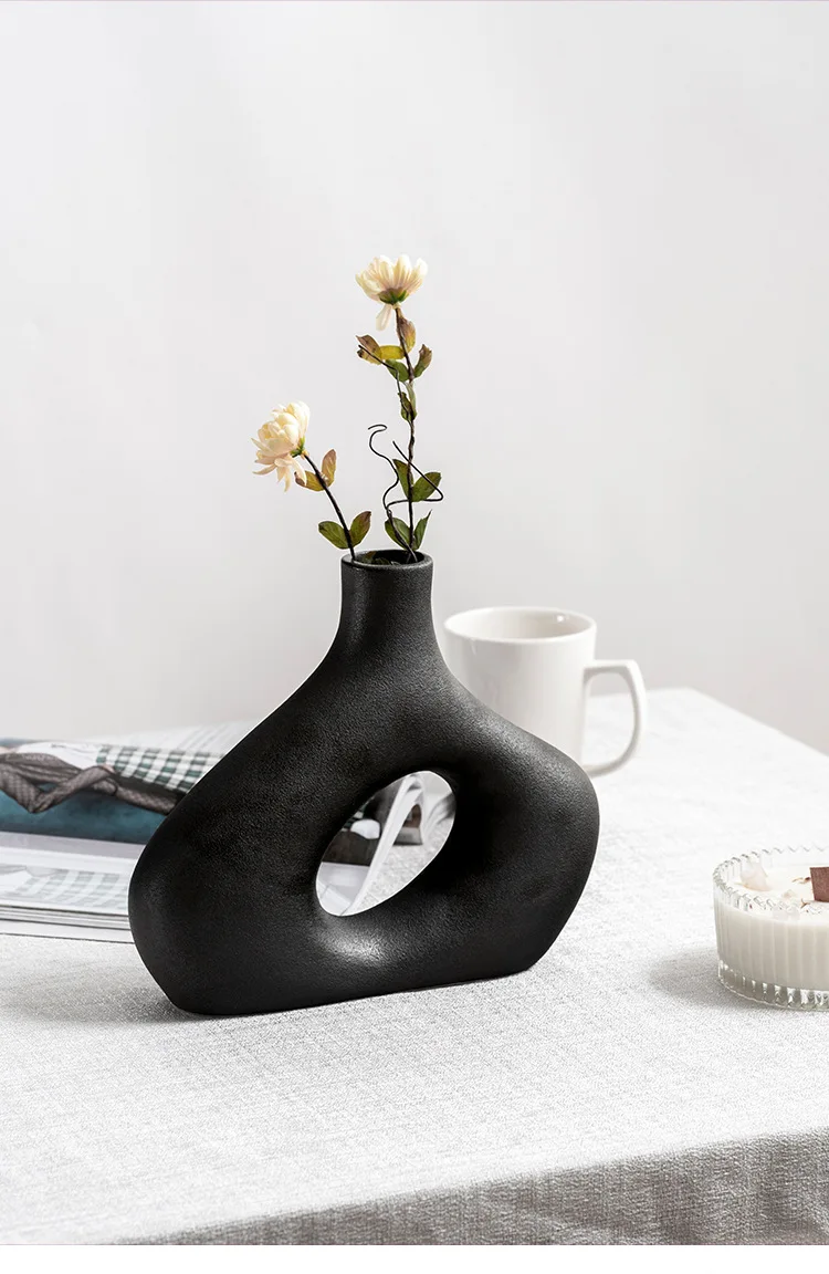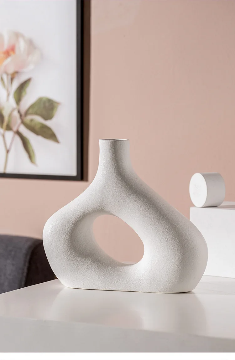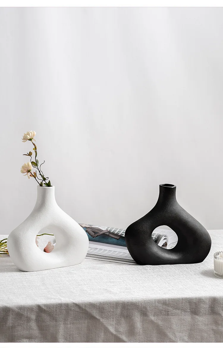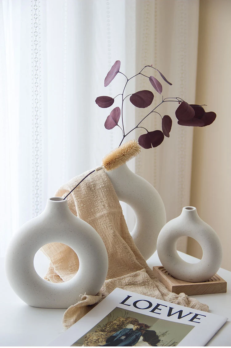 Керамическая полая ваза в скандинавском стиле, круговой цветочный горшок, сушеные цветы, искусство, аксессуары для украшения дома, офисный стол, гостиная, Декор