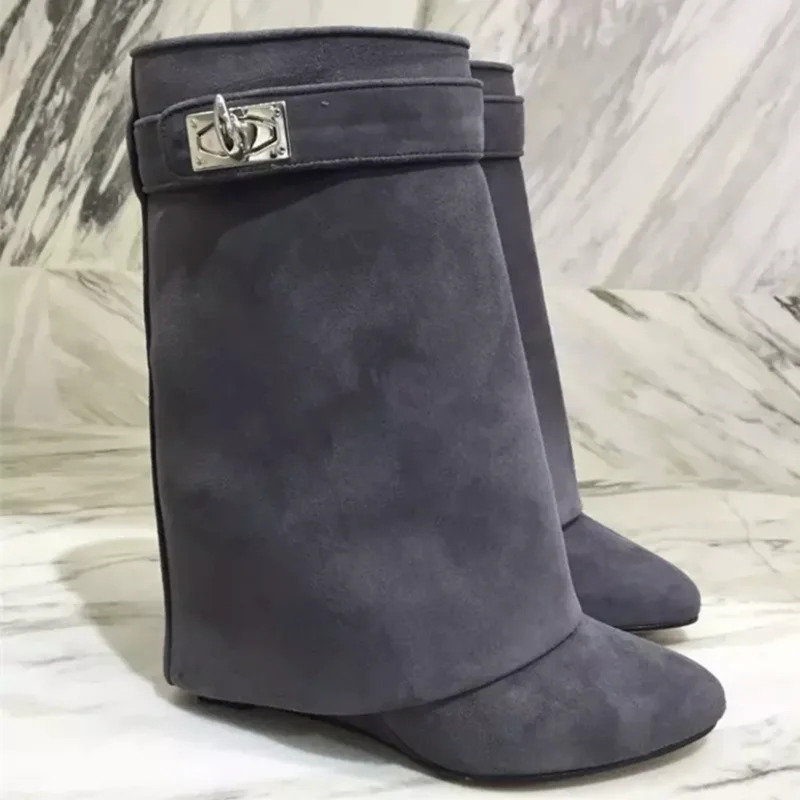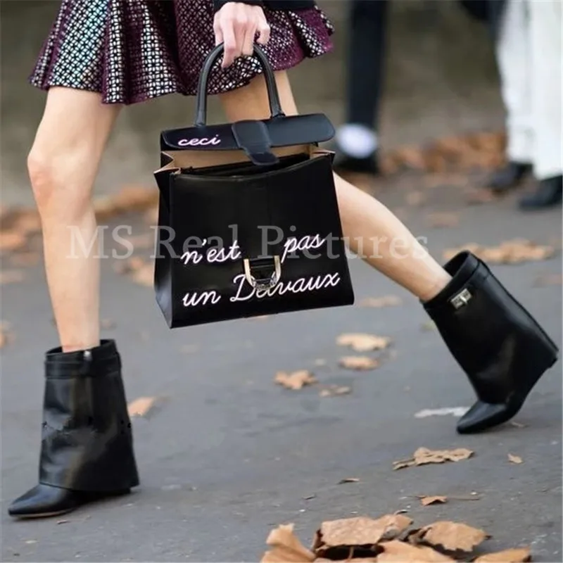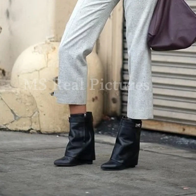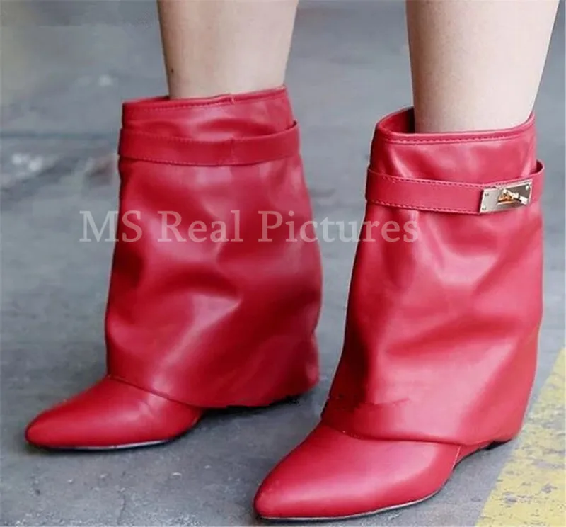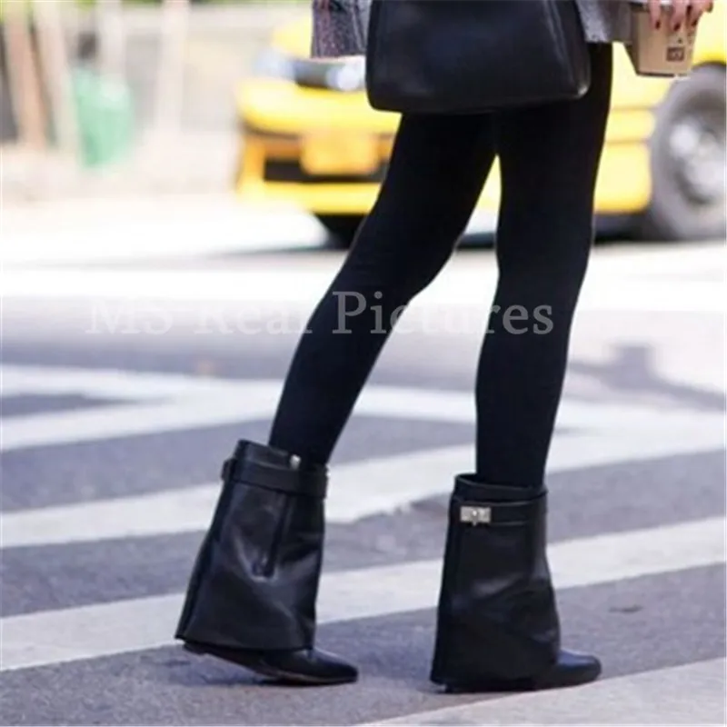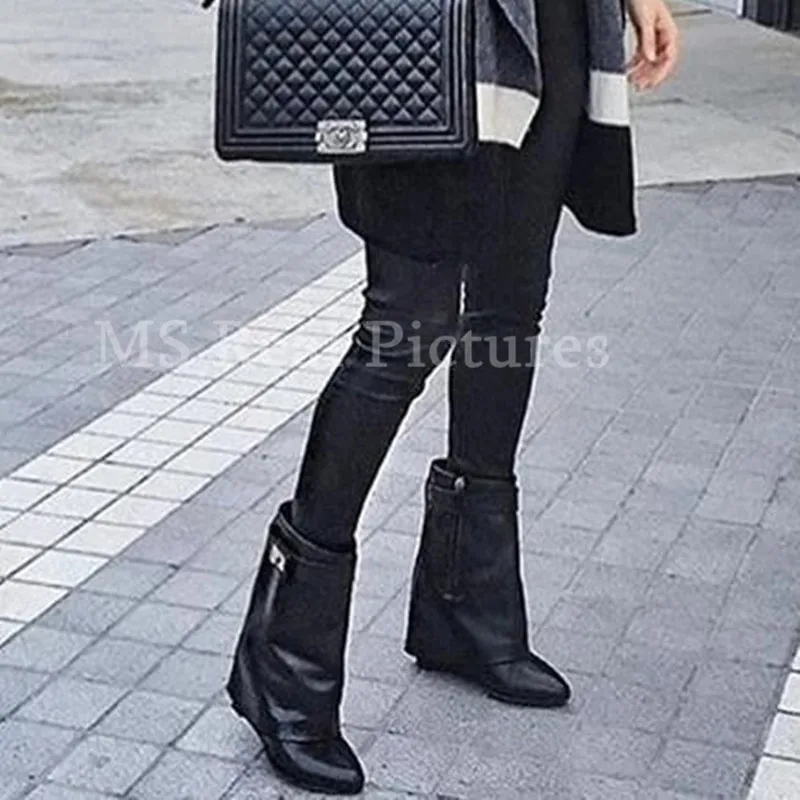 Женские ботильоны с острым носком, обувь для увеличения роста, женские ботильоны на танкетке, кожаные ботинки, Новинка