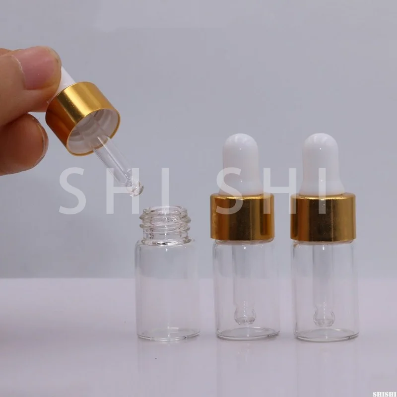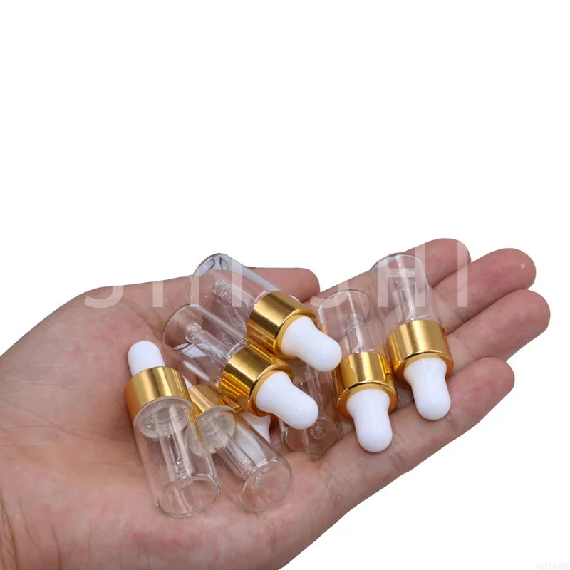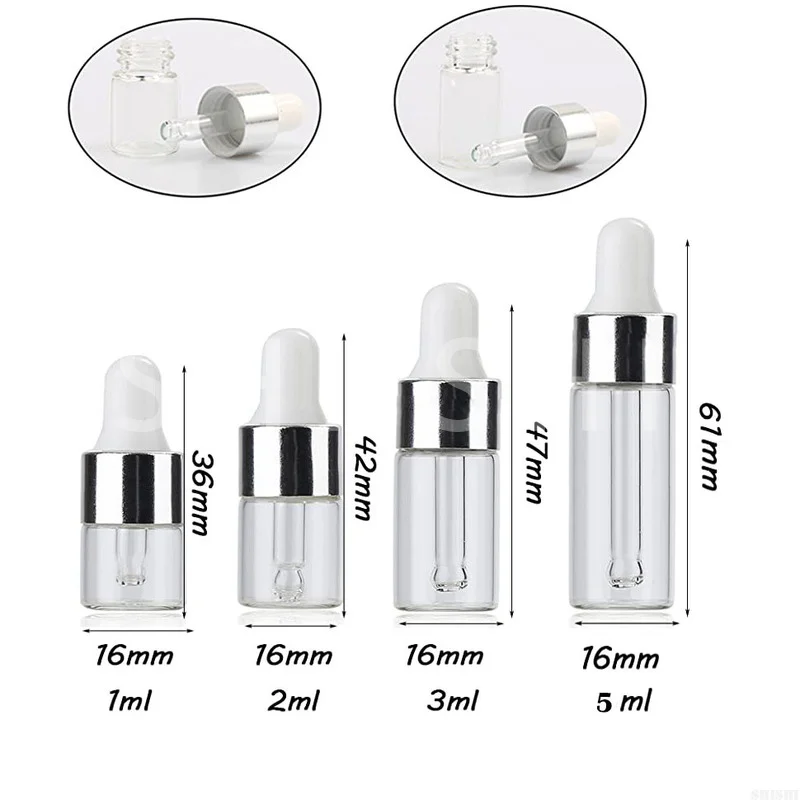 Стеклянные флаконы-капельницы для эфирных масел, 100 шт., пустые косметические контейнеры сделай сам, флаконы для путешествий, 1 мл, 2 мл, 3 мл, 5 мл