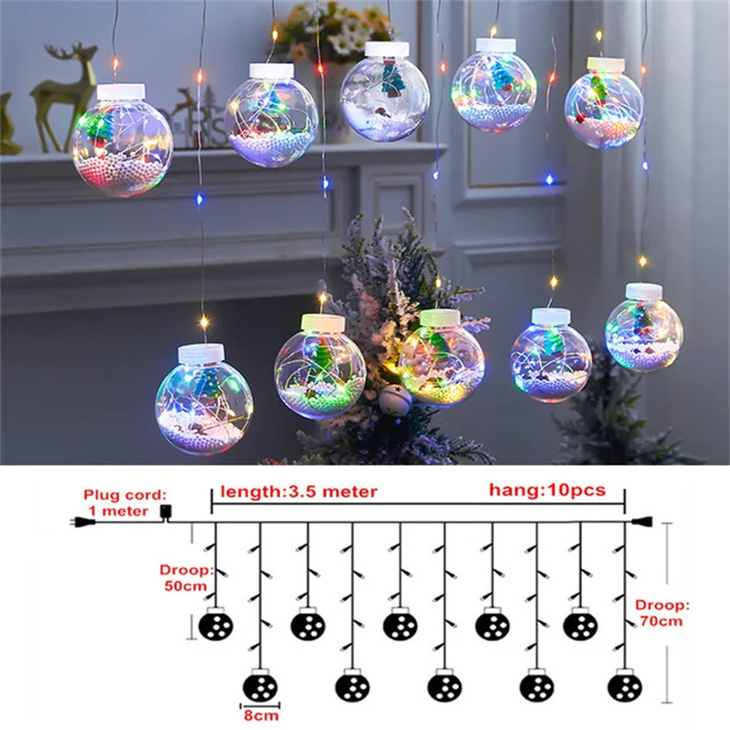 СВЕТОДИОДНАЯ Гирлянда-занавеска в виде рождественского шара, новый ...
