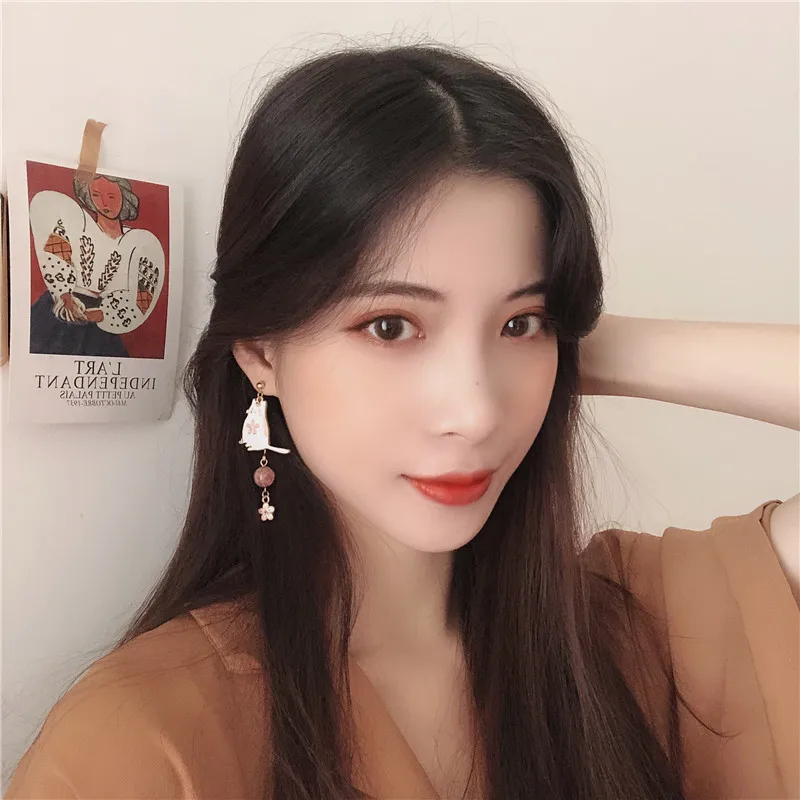 Цветок в Корейском стиле, милые висячие серьги с животными для женщин, луна, звезды, котенок, кролик, шар, асимметричные серьги, вечерние ювелирные изделия, подарок