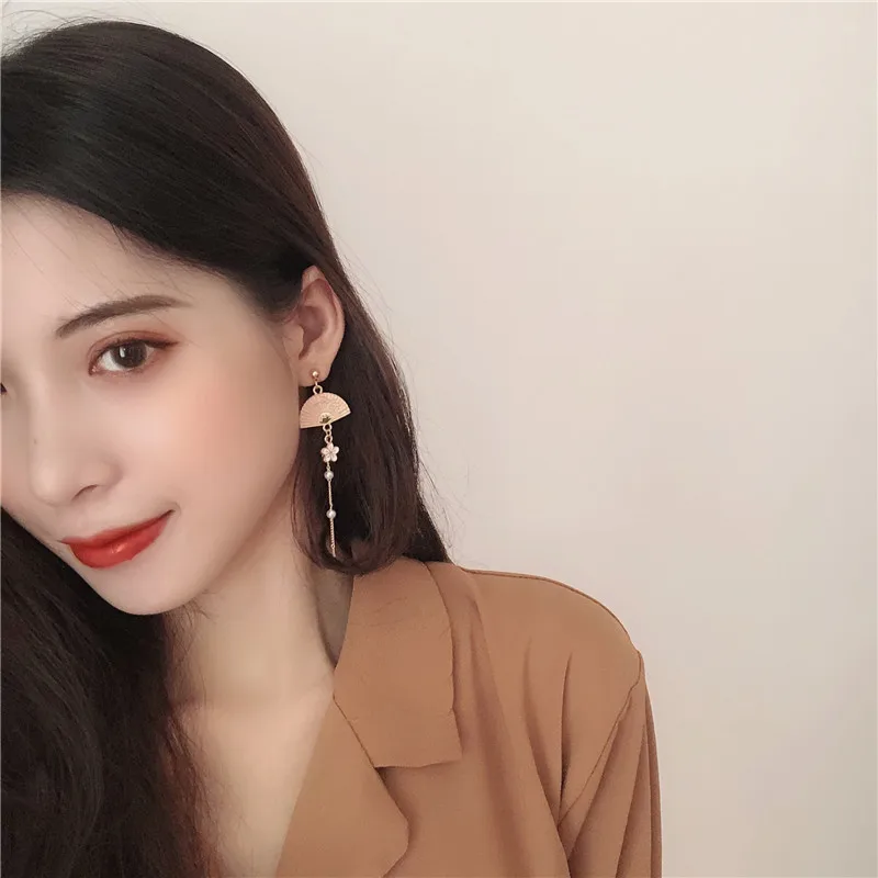 Новые корейские длинные эффектные геометрические висячие серьги с к...