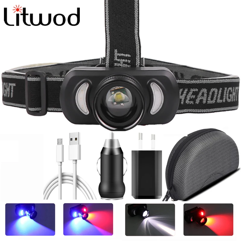 Налобный фонарь со встроенным аккумулятором, 3 светодисветодиодный да, перезаряжаемый через USB, водонепроницаемый, белый, светильник свет
