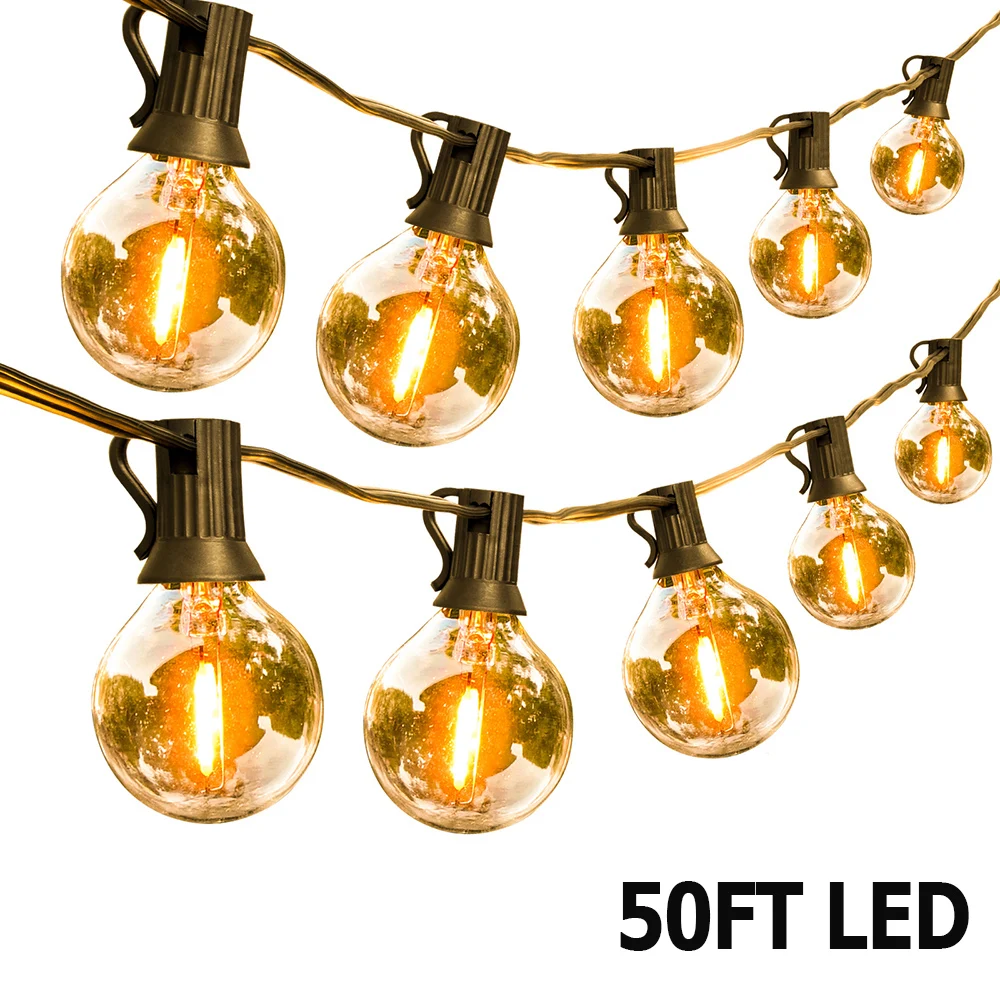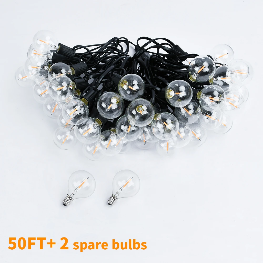 Гирлянда G40 с круглыми лампочками, вечерние ничный шнурок с лампочками теплого белого света, 50 прозрачных винтажных лампочек, уличное украшение для заднего двора, 50 футов