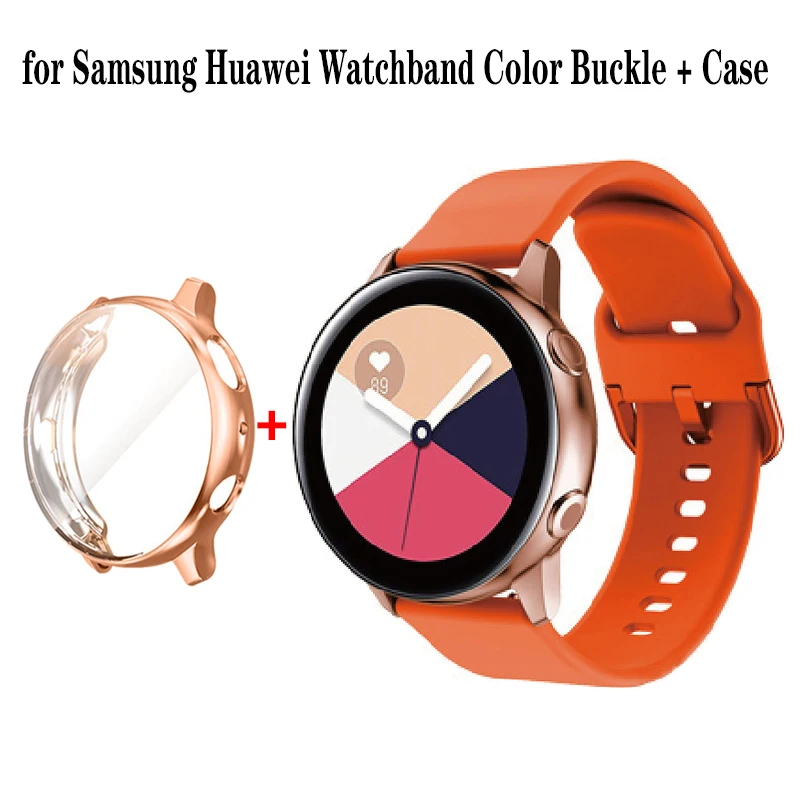 Ремешок и чехол силиконовый для Samsung Galaxy Watch Active 2, оригинальный браслет 20 мм для смарт-часов Huawei GT 2 42 мм, 4044 мм