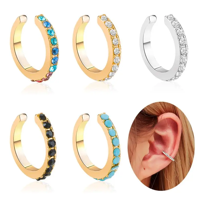 1 шт., винтажные серьги-клипсы с кристаллами, унисекс, рок-девушка, без пирсинга, женские модные украшения, кольцо для носа и уха, манжеты