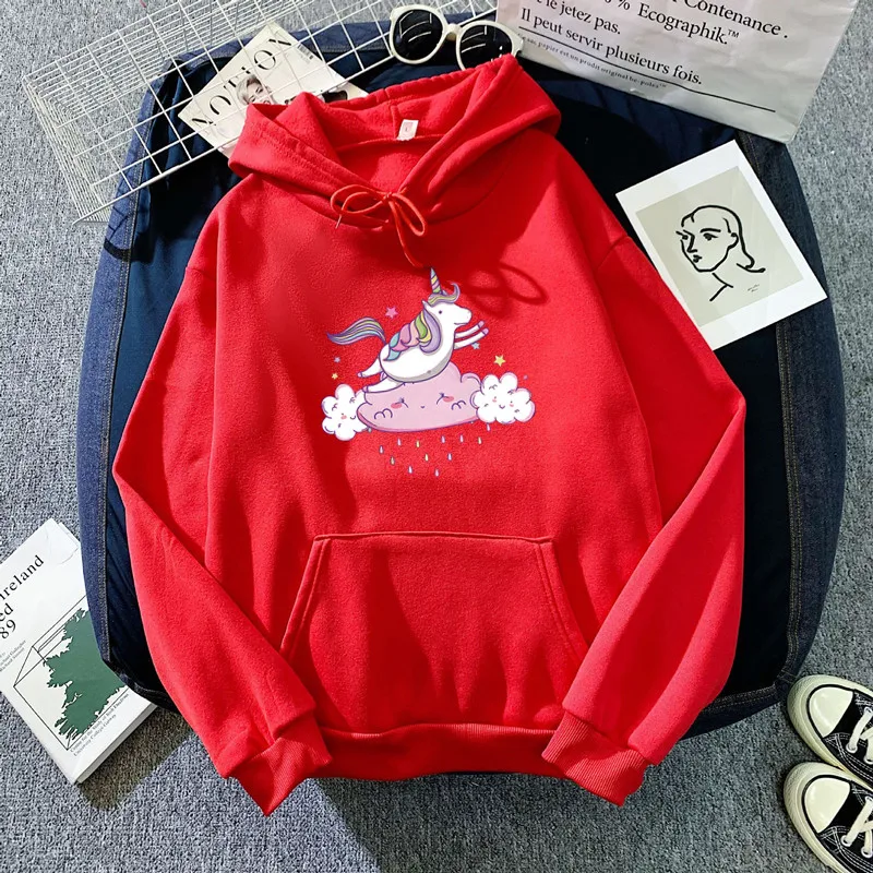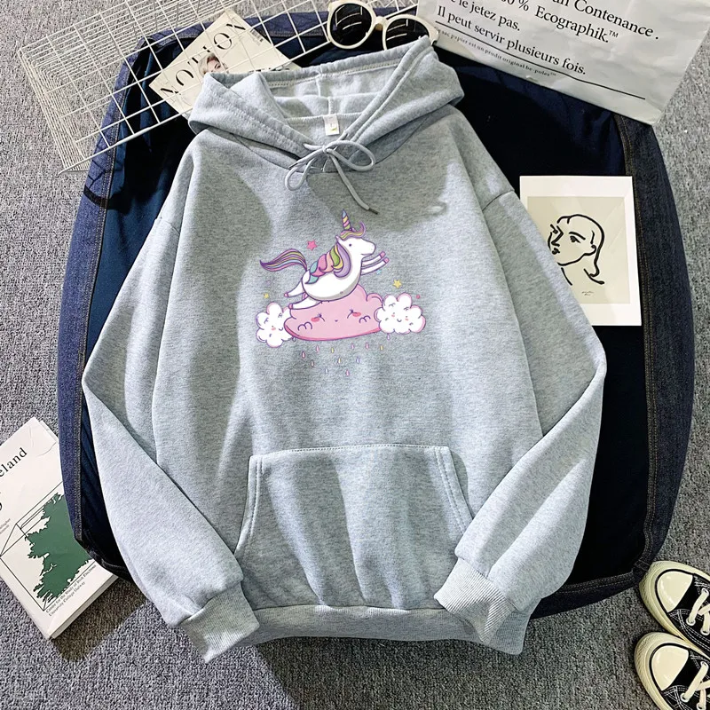 Кавайная толстовка с единорогом, женские розовые топы, одежда, худи с принтом, толстовки оверсайз, Мультяшные пуловеры, Повседневная Женская толстовка