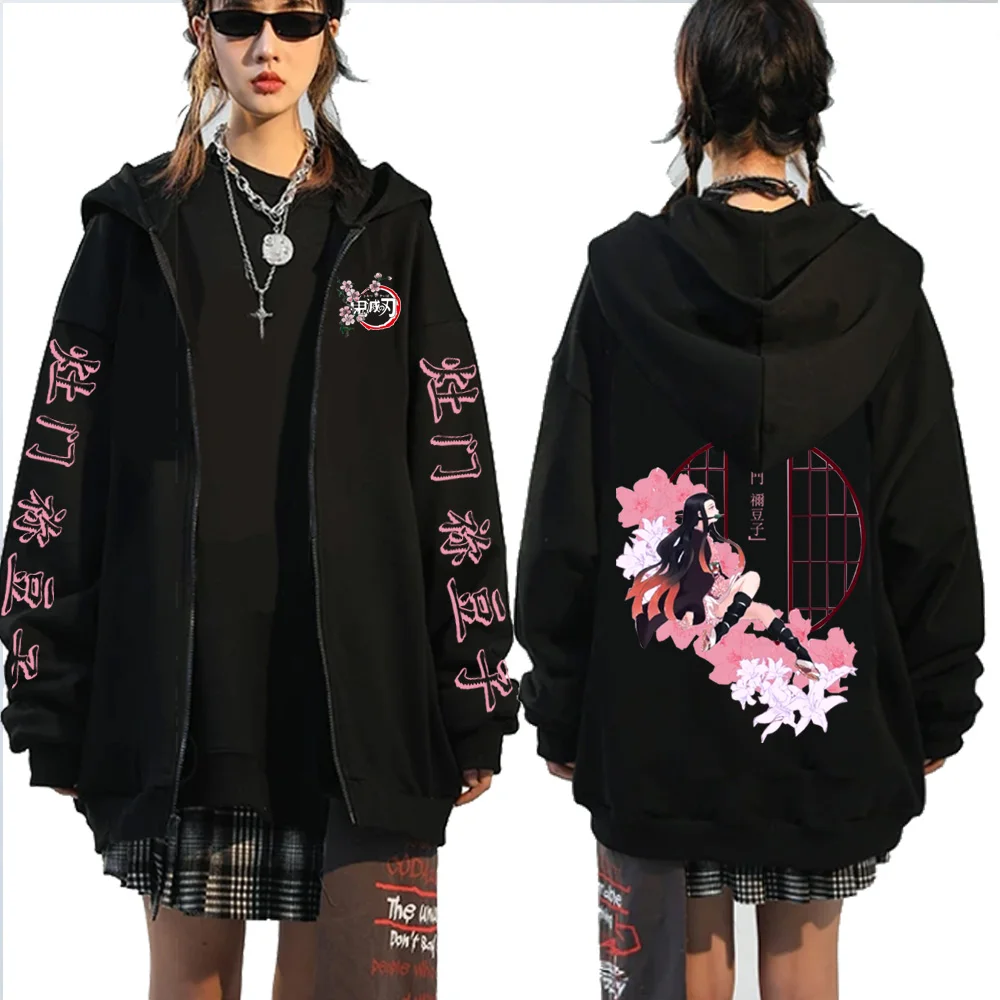 Забавная модная Толстовка Kamado Nezuko с капюшоном и принтом, толстовка с капюшоном, аниме, рассекающий демонов, пальто на молнии для косплея, осенне-зимний топ в уличном стиле