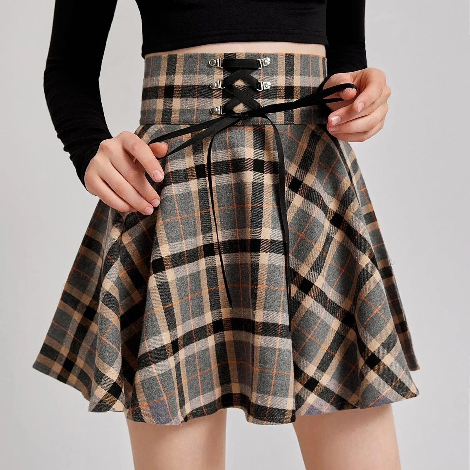 Юбка женская в стиле ретро, с завышенной талией, клетчатая, на молнии
