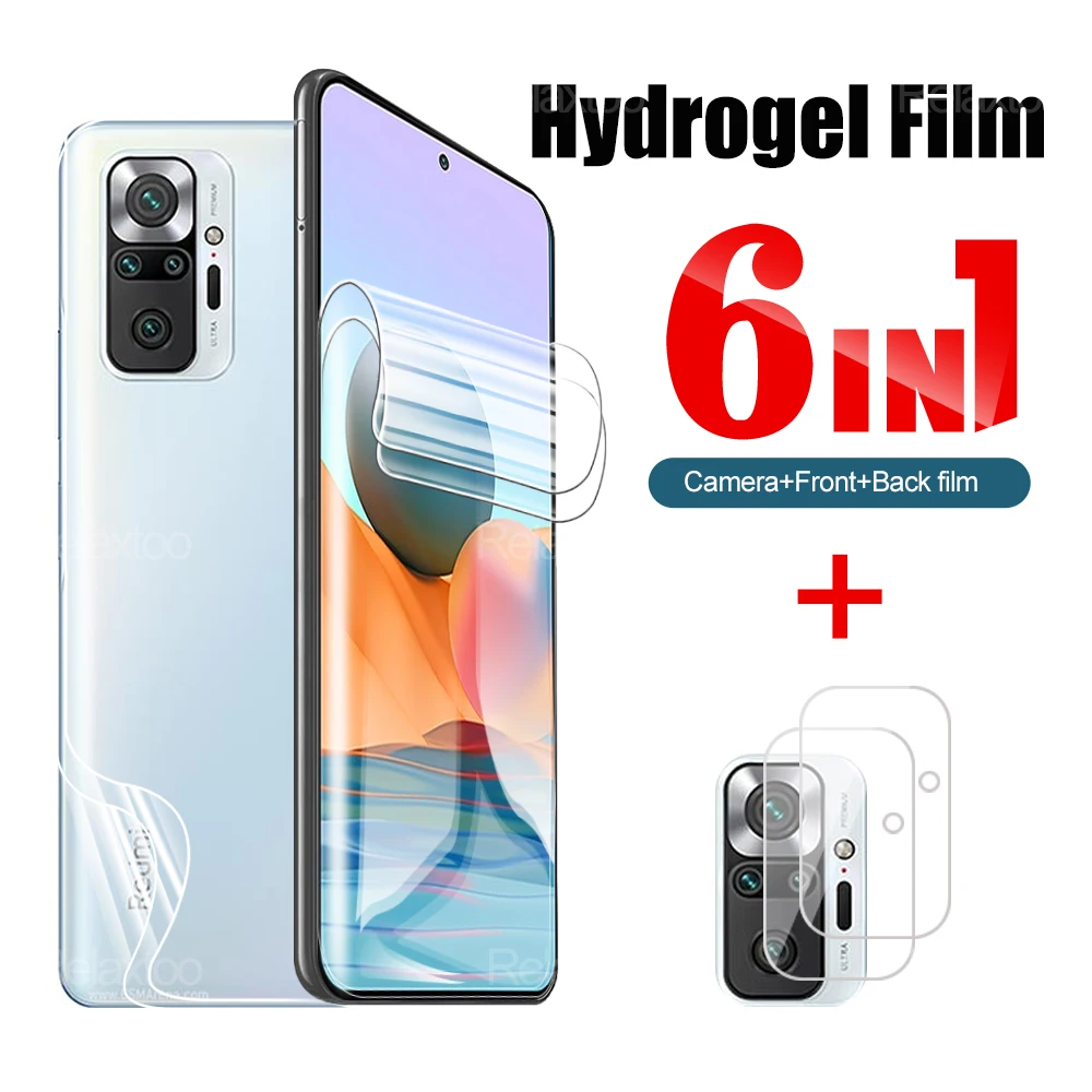 Гидрогелевая пленка для переднего и заднего экрана с полным покрытием 6 в 1 для Xiaomi Redmi Note 10 Pro Max, Защитная пленка для объектива камеры Remi Note 10T 10S