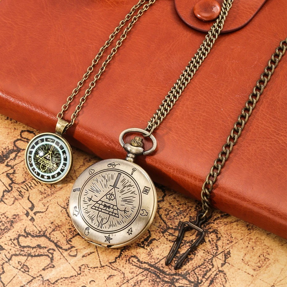 Винтажные антикварные кварцевые гравитационные карманные часы с гравитационным Биллом и драгоценным камнем в подарочной коробке, комплект с ожерельем и подвеской, ювелирные изделия для мужчин и женщин