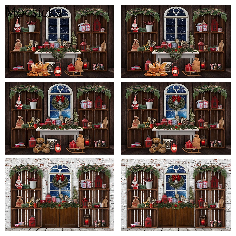 Рождественский современный фон для кухни зимний шкаф печенье Дети День рождения фон зимнее окно семейная ПОРТРЕТНАЯ ФОТОГРАФИЯ