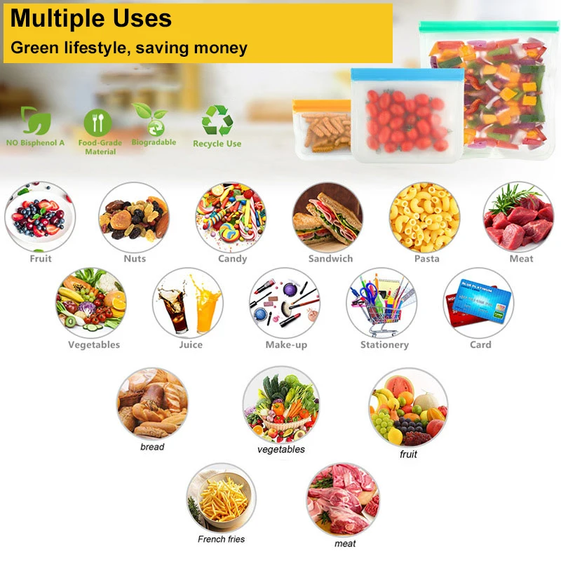 PEVA, силиконовые контейнеры для хранения пищевых продуктов, стандартная сумка на молнии, сумка для хранения пищевых продуктов, сумка для хранения пищевых продуктов
