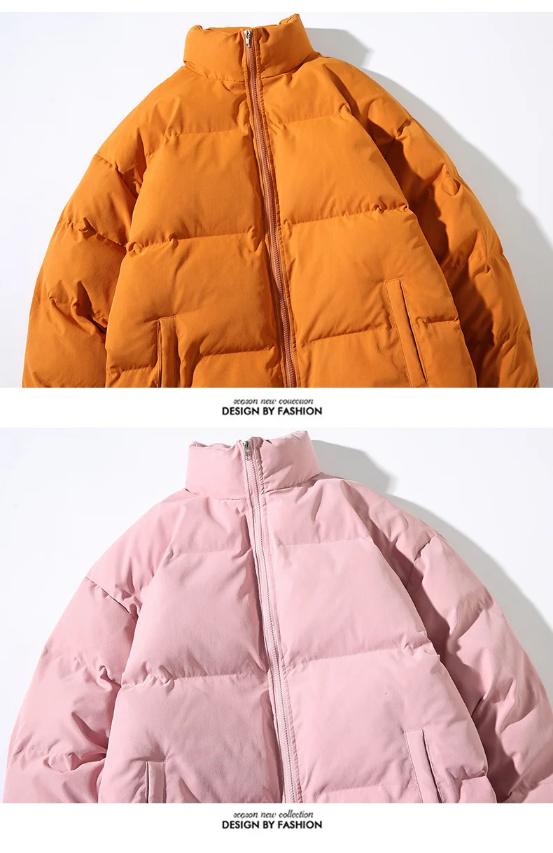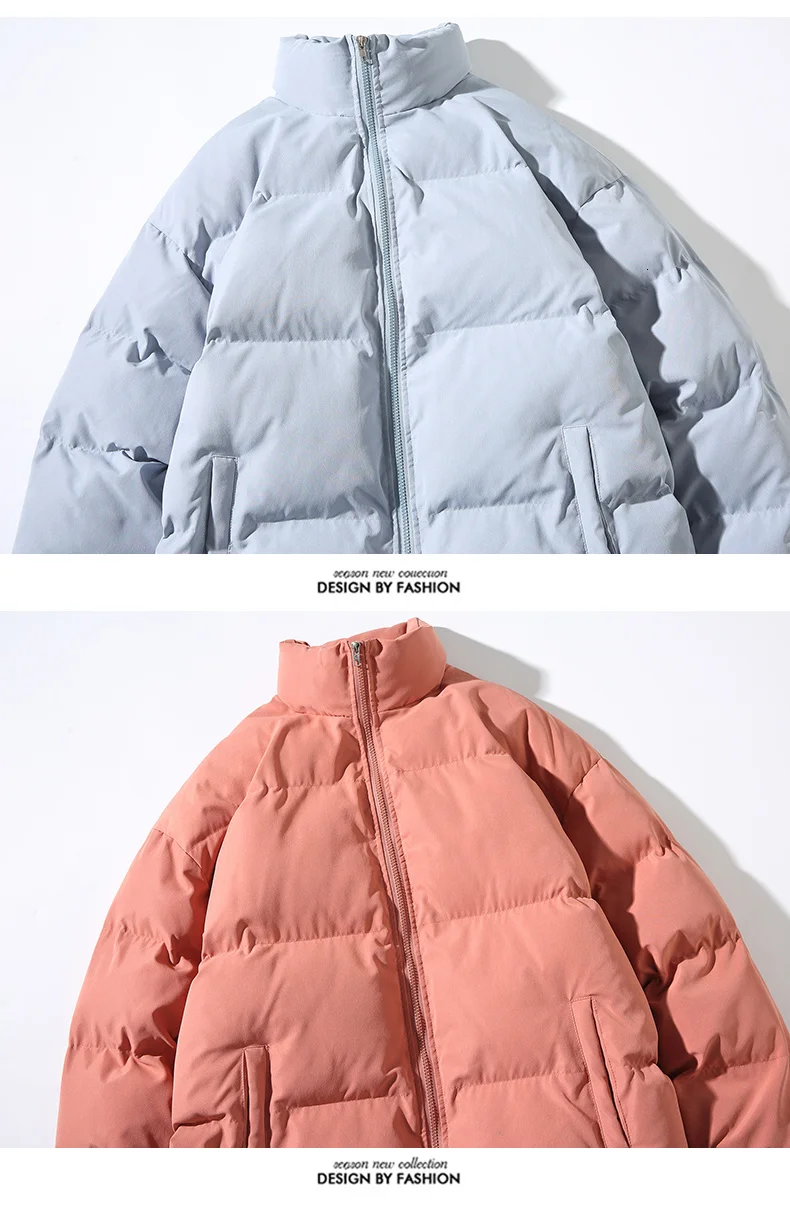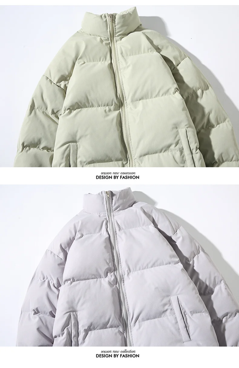 Парка Hybskr Мужская теплая, однотонная модная зимняя куртка с хлопковой подкладкой, с воротником-стойкой, одежда в стиле Харадзюку, большие размеры