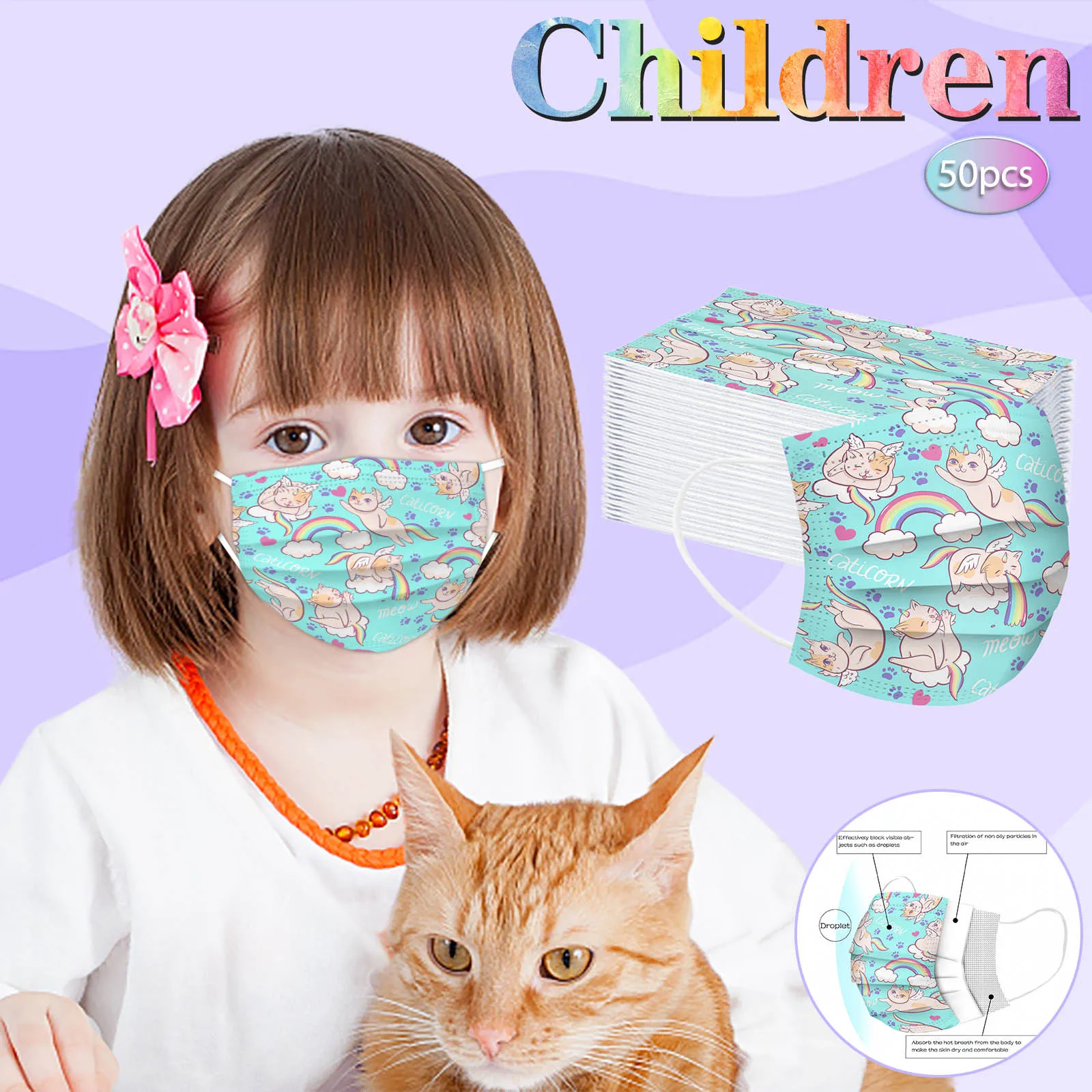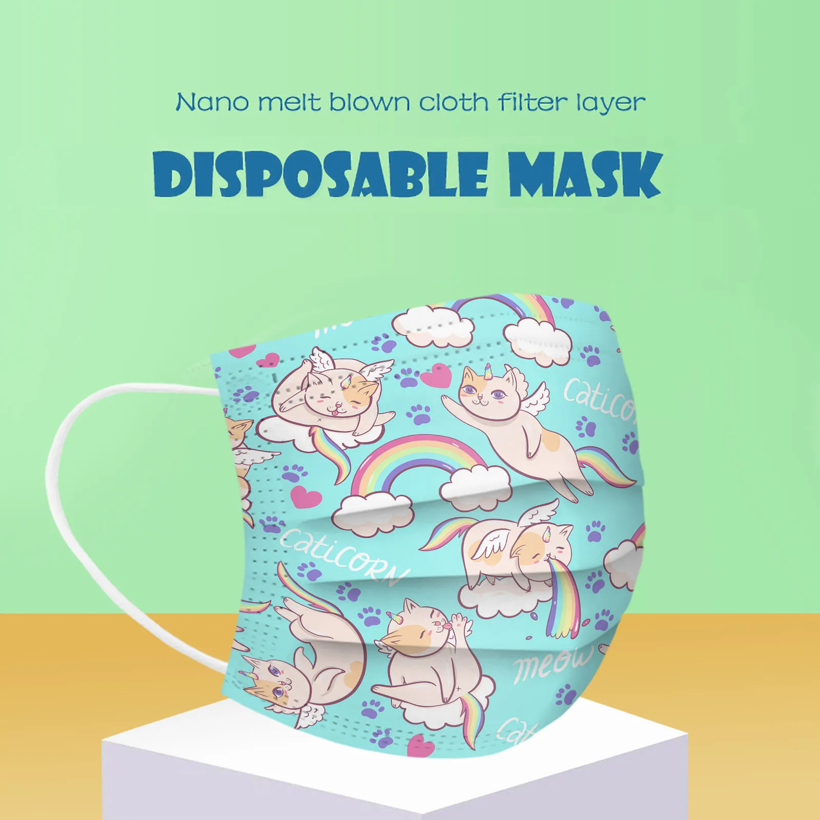 В 3 слоя Нетканая одноразовая маска изготовлена из 3 слоев нетканого материала, Безопасен и безопасен для использования. Дышащий материал и милый Узоры, которые делают его полезным и модным. Специальный 3 слоя из нетканого материала Дизайн, обеспечивает некоторую защиту от пыли, автомобильных выхлопных газов, Пыльца и т. д. эластичная Ушная петля, легко носить и не давит на уши. Маникюрный салон или любые другие области, где может потребоваться защита