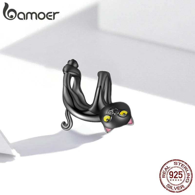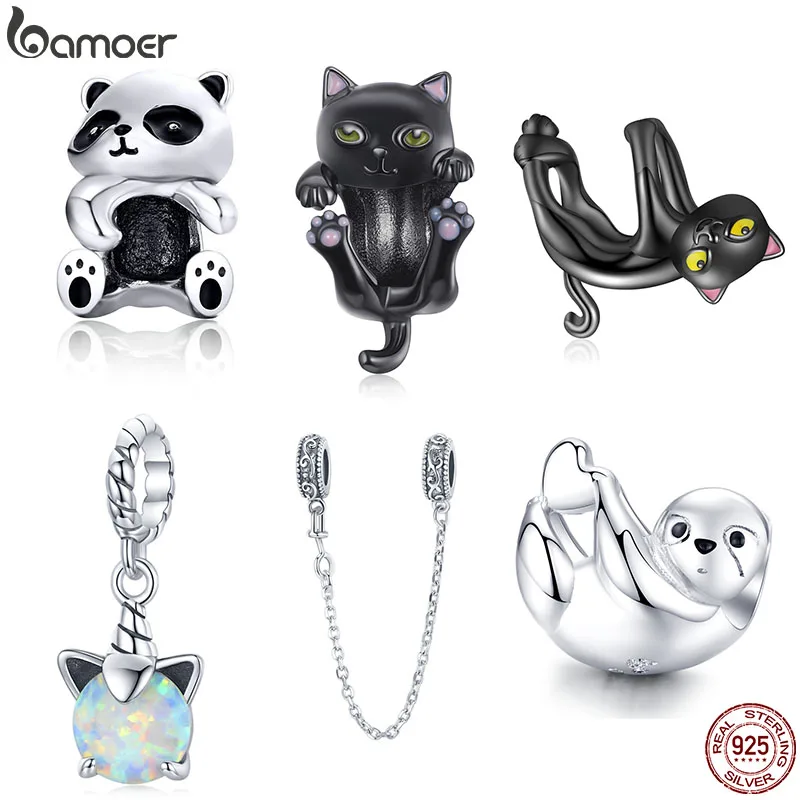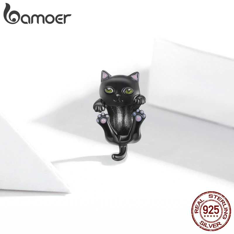 Bamoer, мультяшный черный бусина "Кошка", подходит для оригинального браслета и браслета, серебро 925 пробы, кулон Аврора пони, хорошее ювелирное изделие, сделай сам, подарок