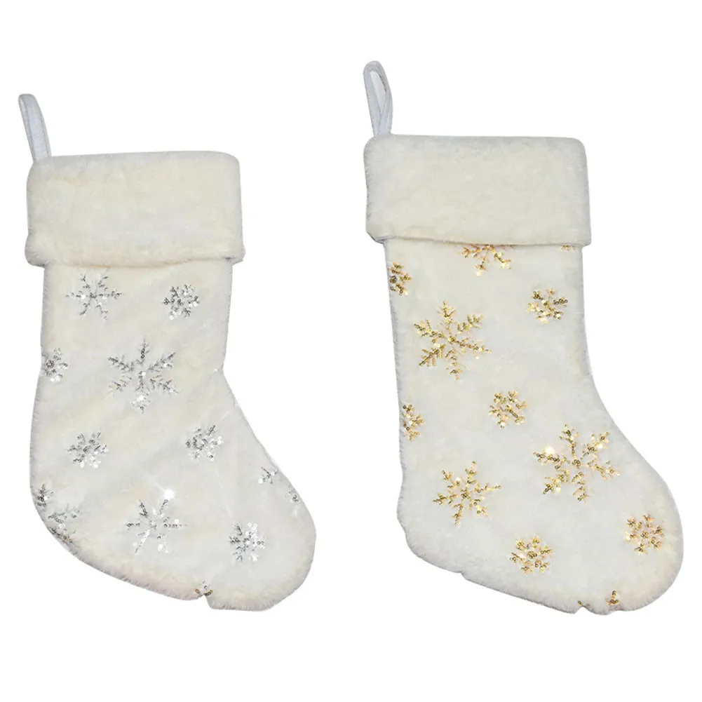 Рождественские чулки, золотой, серебряный, снежинки, вышитые белые украшения для рождественской елки, подарочные носки, искусственный мех, детский мешочек для конфет, новый год 2022